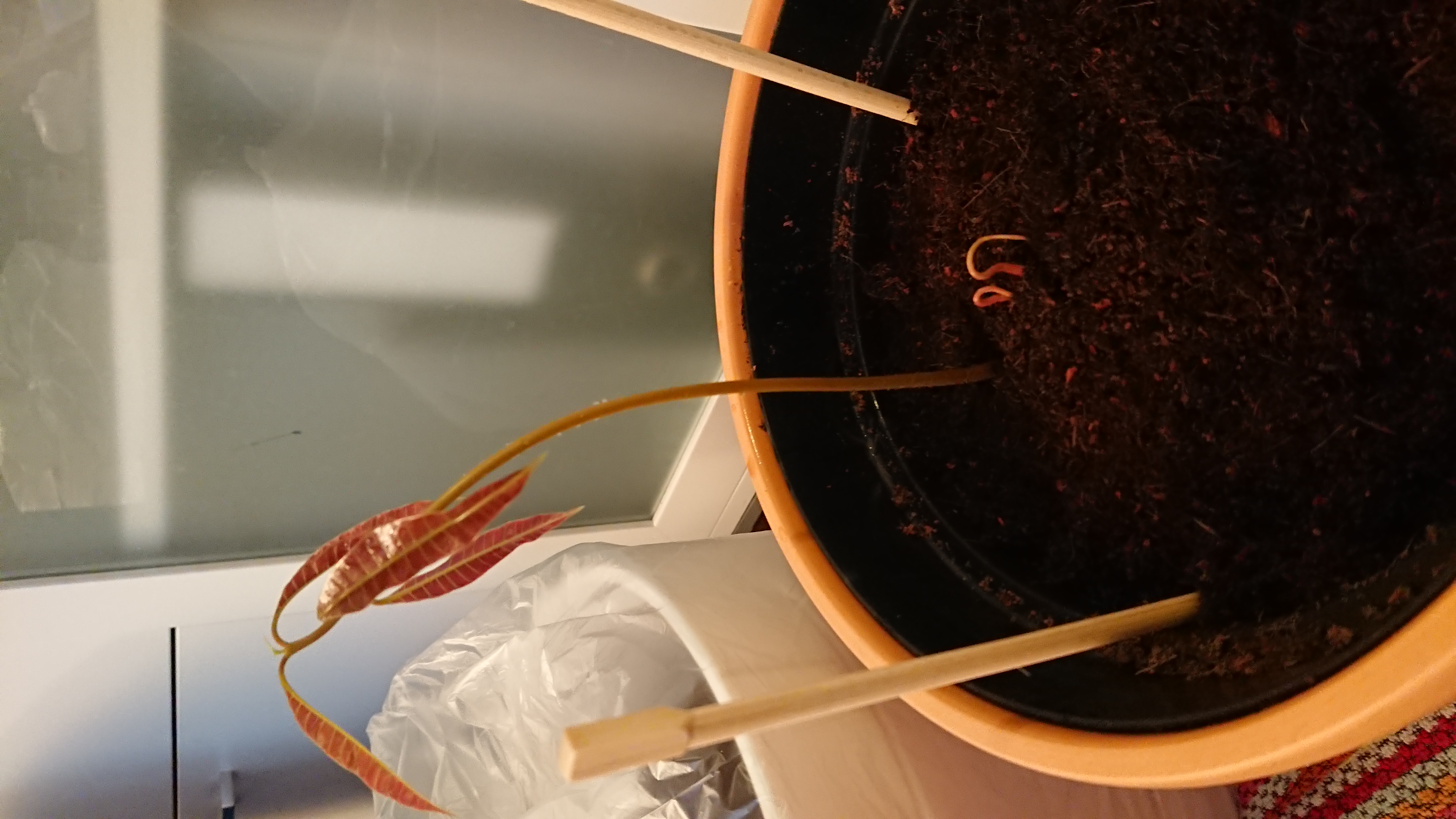 Meine Mango schwächelt und kämpft schon seit Monaten.. es kommen immer wieder neue Blättchen, die aber auch wieder absterben, bevor sie es überhaupt richtig aus dem Stämmchen schaffen. Heute habe ich sie in eine höhere, schmalere Flasche gesteckt, nachdem der Kern endlich ab war, aber das ganze Dingelchen sieht einfach gar nicht fit aus.