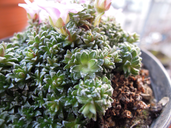 Edit:Ich sehe gerade, daß Saxifrag oppositifolia rötliche Kelchblätter hat. Passt nicht!