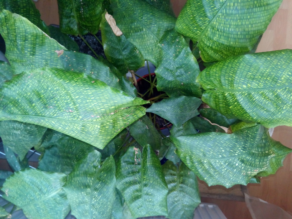Sie stand unter einem Südfenster, wurde immer gut gegossen (Wahnsinn, was sie manchmal "wegsoff!"), mehrmals die Woche besprüht (immer wenn ich die Orchideenluftwurzeln versorgt habe) und fühlte sich sehr wohl. Alle Blätter standen wie eine Eins.