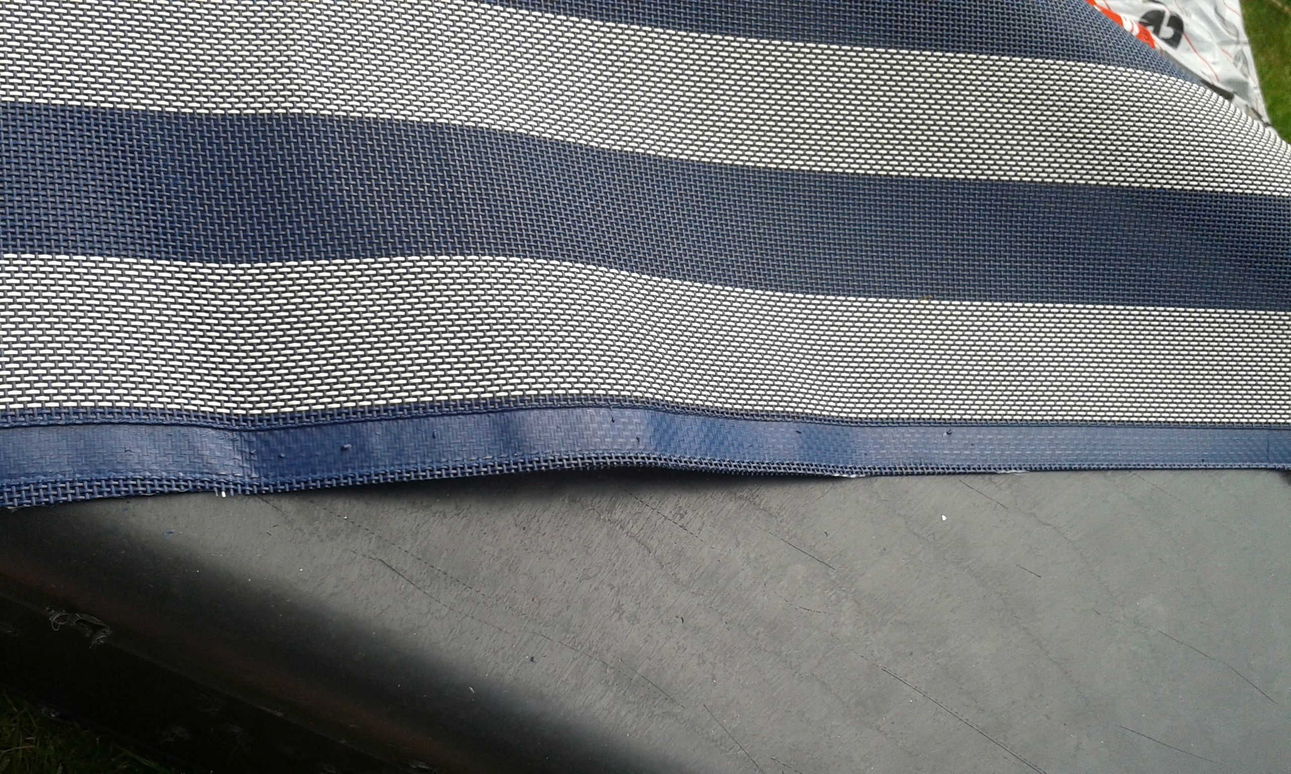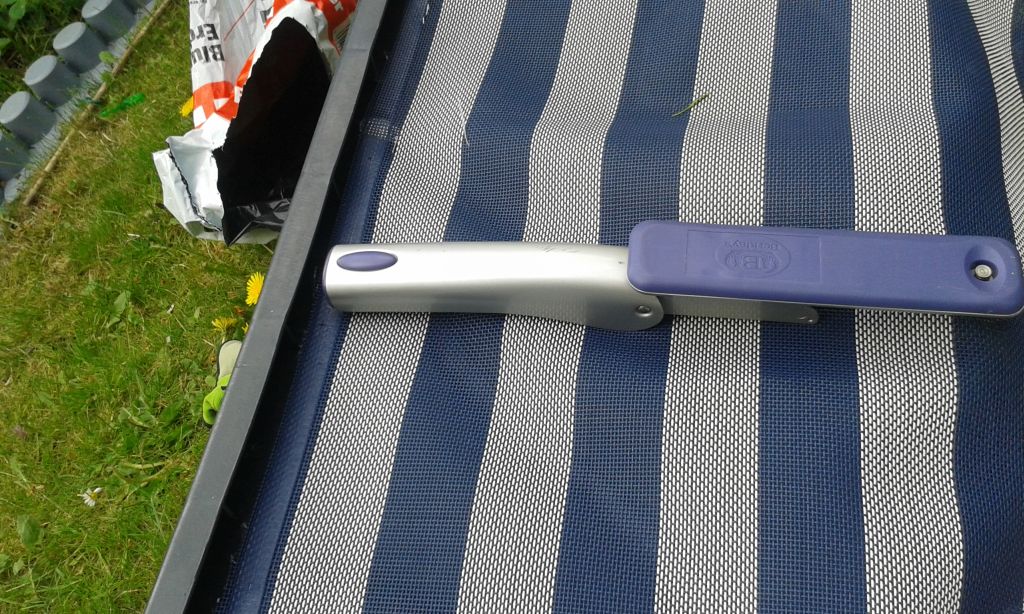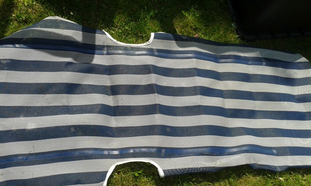eine defekte Bespannung einer ehemaligen Gartenliege
