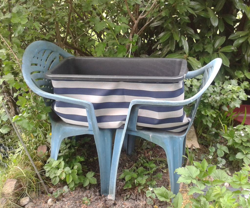 unten an den Stuhlbeinen kommen noch alte Holzplatten, dann ist das für den Winter mein Igelunterschlupf (oder was sich da sonst so einnisten will)