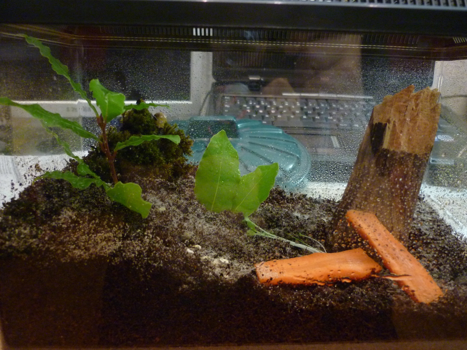 Also habe ich die Schnecke zunächst in einer alten Plastik-Keksdose untergebracht, und mich in einem Schneckenforum nach der Art und der richtigen Pflege erkundigt.