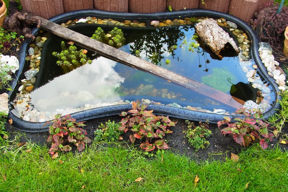 Gibt's keine (wie bei dir und der Maus), sieht's ganz anders aus. Egal, wie gut man schwimmen kann, irgendwann wird man müde... Auch Igel und andere kleine Säugetiere ertrinken in solchen Fallen. Das passiert überall, auch gänzlich ohne nachbarliches Zutun. Gut, dass du jetzt ein Brett hingelegt hast. Wenn dir das mit dem Brett nicht gefällt, kannst du auch eine oder zwei knorrige Wurzeln oder so was suchen und reinlegen. Sieht hübsch aus und erfüllt den Zweck. Genauso geht ein Steinhaufen zum Ufer hin.