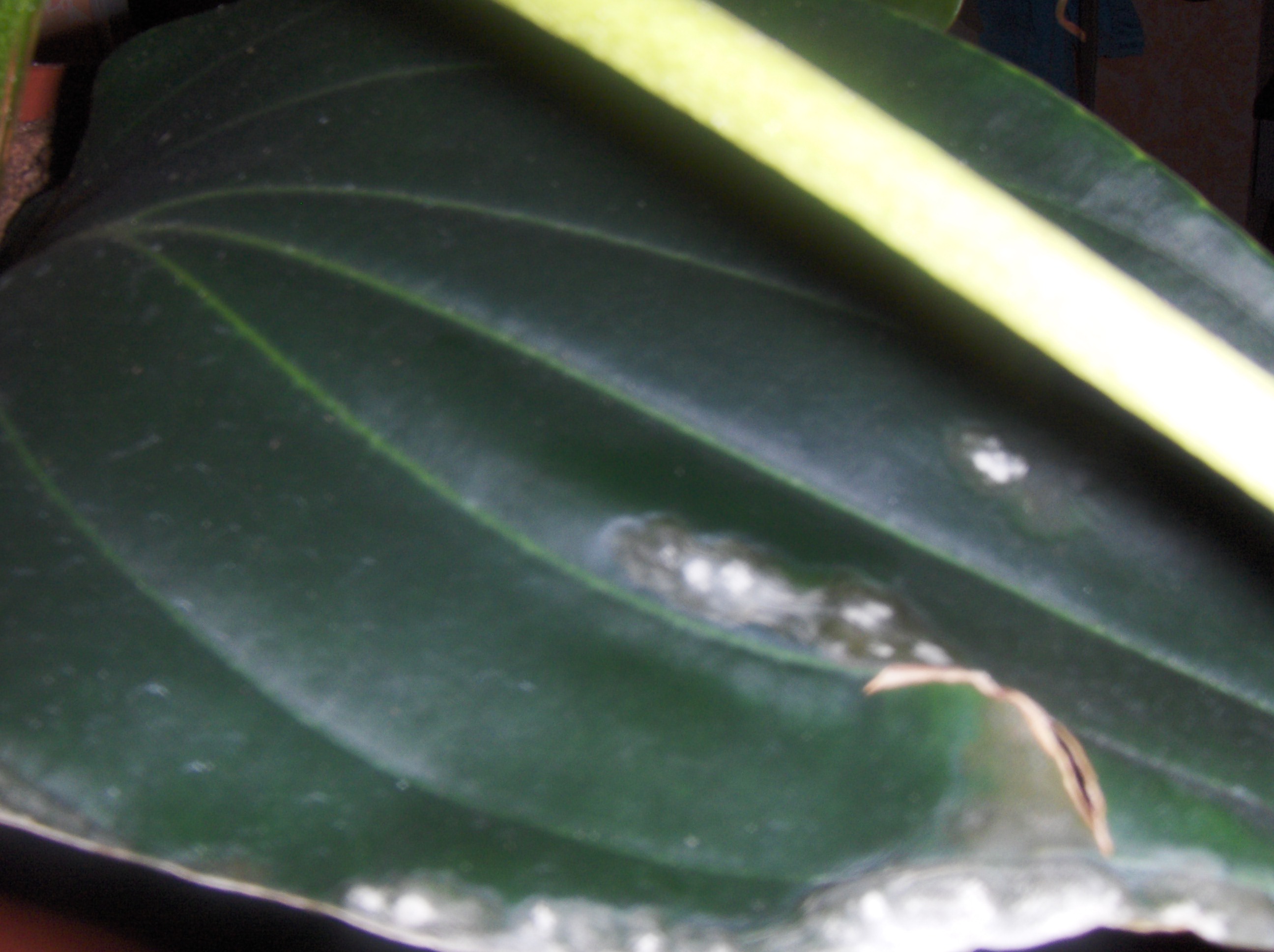 seit gestern bekommt meine Medinilla weiße Flecken auf den Blätter... und ich weiß nicht was das ist... Um die weißen Flecken sieht das Blatt auch richtig braun und vertrocknet aus.