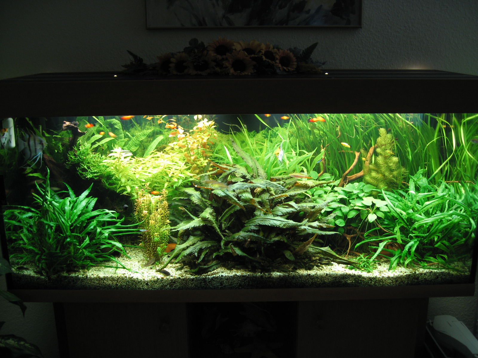 Wenn du dein Aquarium im Ganzen fotografieren möchtest, dann am besten abends.