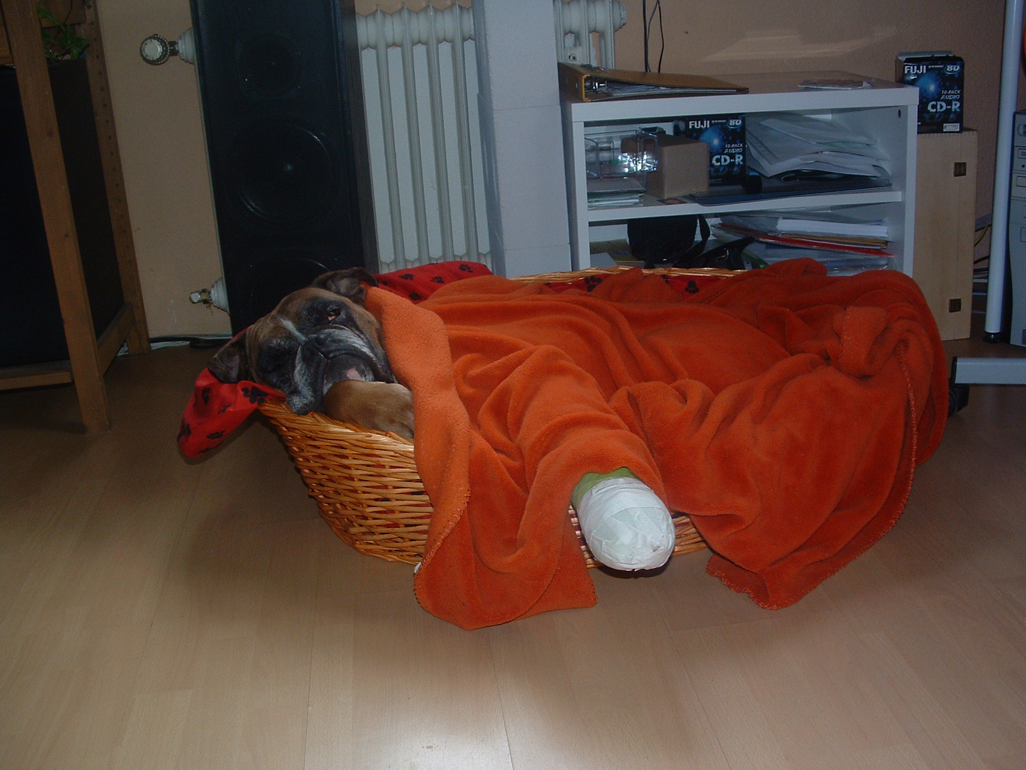 Ich bin ganz besorgt; mit acht Jahren ist ein Boxer ja doch schon recht alt, und dann Vollnarkose...