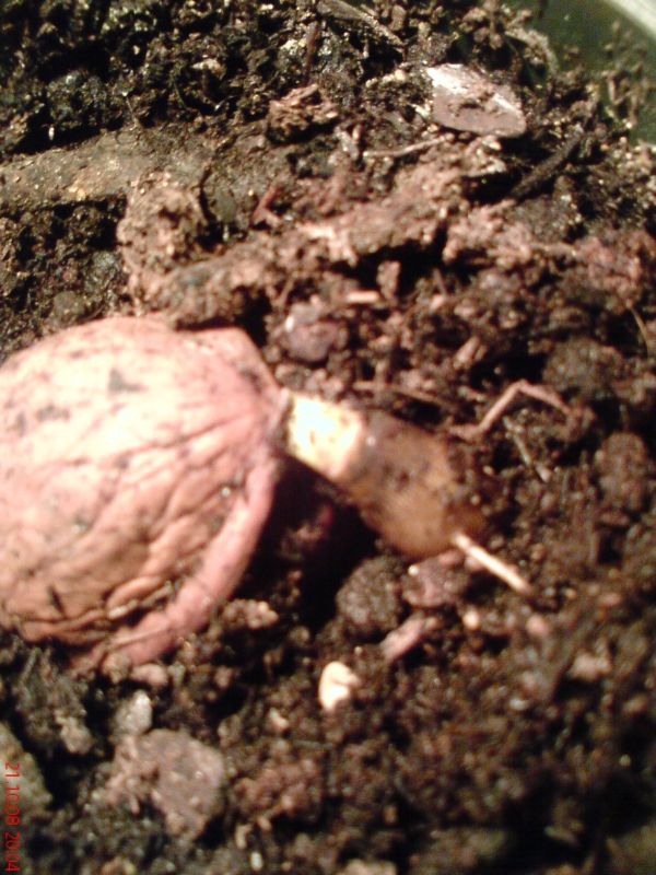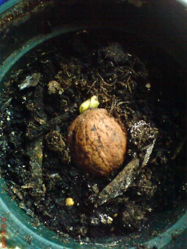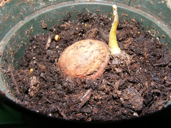 Ich war vor einem Monat beim Nüsseknacken und hab in meiner Schüssel eine "frische" Nuss mit Wurzelaustrieb entdeckt. Die Nüsse hatte ich zum Trocknen in eine Schüssel gelegt und die Nuss in der Mitte hatte es warm und feucht und hat ausgetrieben. Yiha!