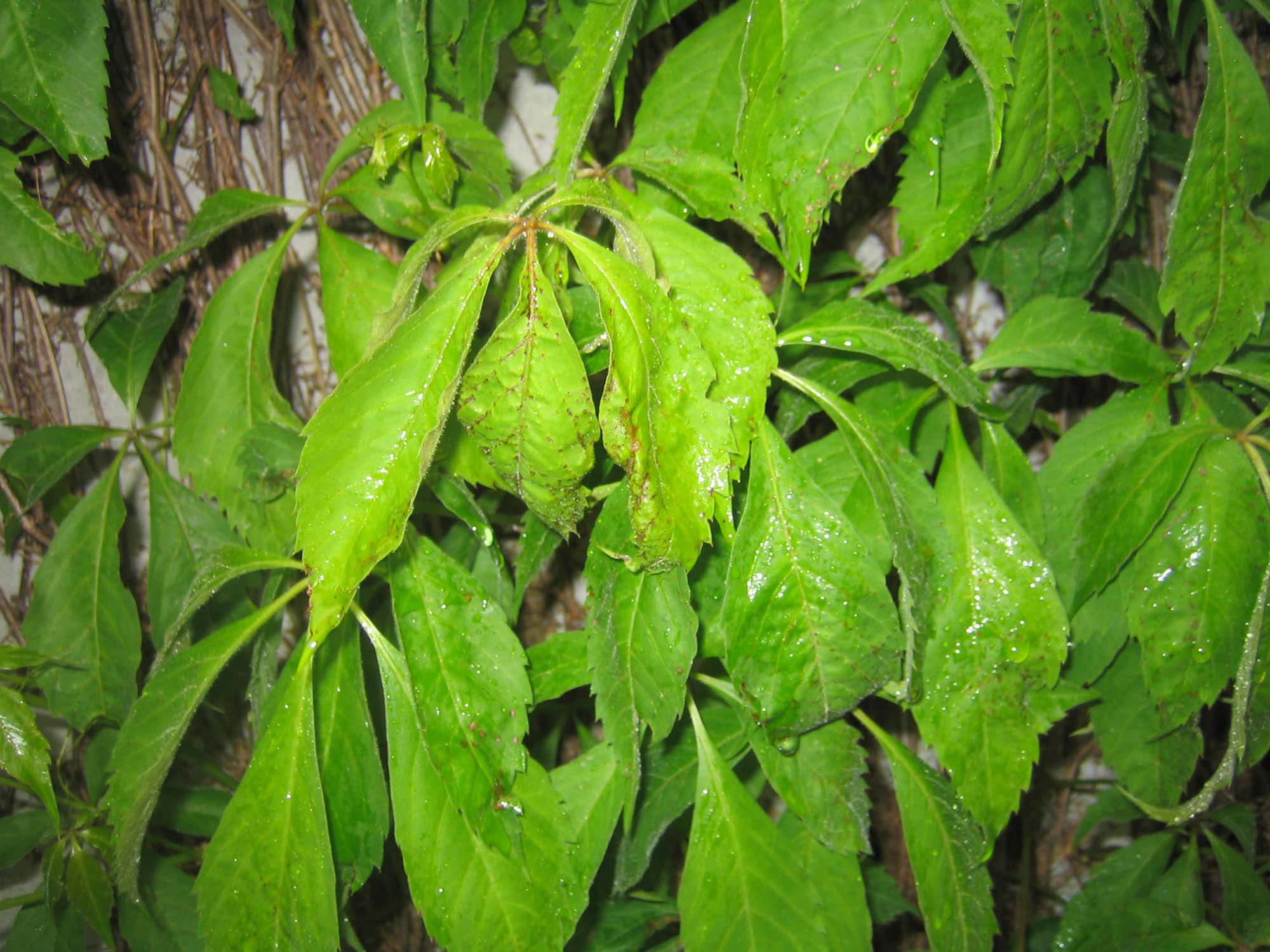 Meine Weinrebe wächst an einer Mauer und das Problem hat sich schon über die ganze Pflanze (vereinzelt) verbreitet. Die Blätter haben einige bis viele dunkelbraune Punkte und sie scheinen zu schwächeln. Besonders die jungen Triebe scheinen sofort angegriffen zu sein. Der Wein ist schon etwa 10 Jahre alt und der Befall tritt zum ersten Mal auf.