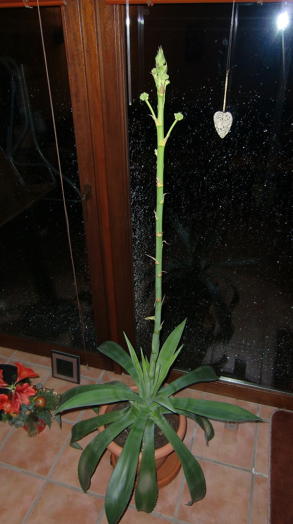 Der Blütentrieb kommt bei den Agaven, wie bei den Musas und in Gewissem Maße auch bei Paphiopedilum, einigen Kalanchoe oder zB auch den Hauswurzen aus dem Herzen, dem Wachstumszentrum. Ist der Blütentrieb einmal angelegt bringt abschneiden rein garnichts - das Herz ist dennoch für die Bildung weiterer Blätter blockiert.