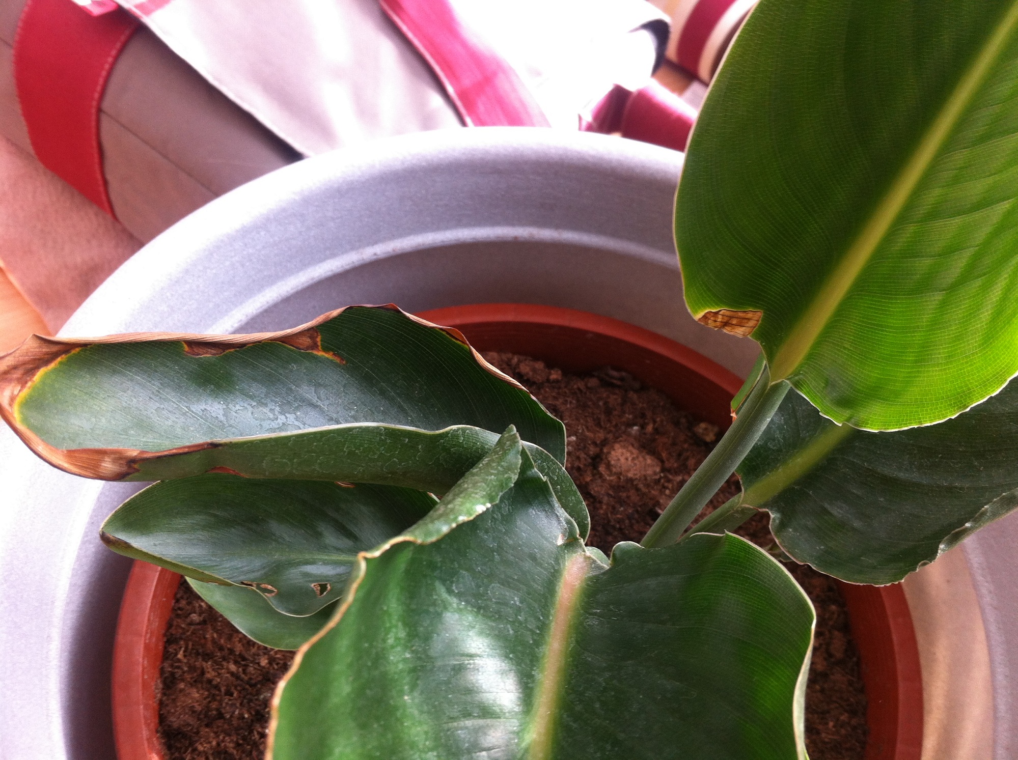 Sie weisen Verfärbungen auf, vor allem bei der Paradiesvogelblume sieht es bedenklich aus. Was kann ich tun, um sie wieder aufzupeppeln?