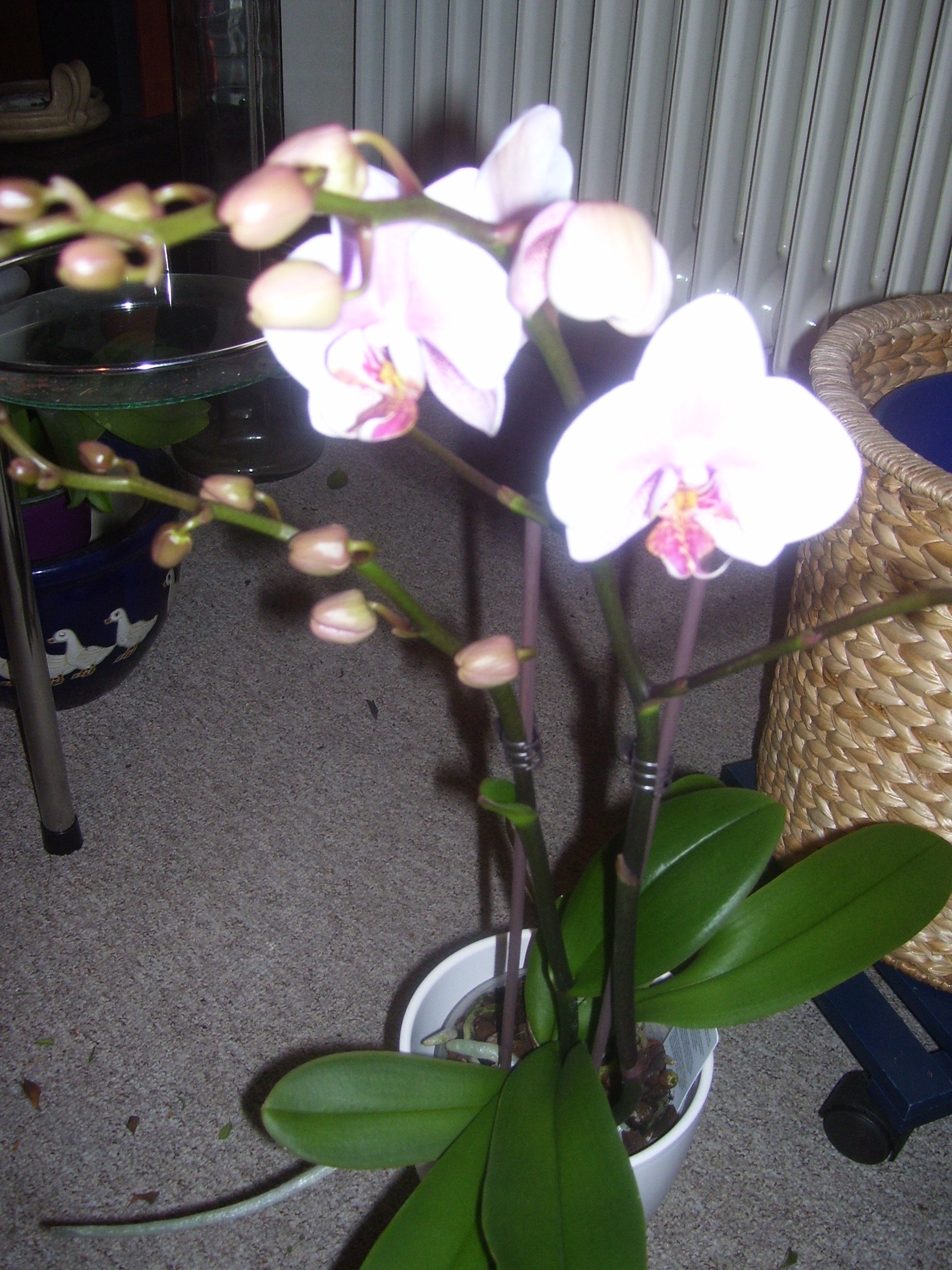 ich war noch einmal unterwegs diesmal im Kaufland,aber nur weil der OBI keine Pflanzenabteilung hat , ja und das kam dabei raus , eine super Orchidee mit zwei Blütenstengeln wovon der eine nochmal verzweigt ist für 6,99€