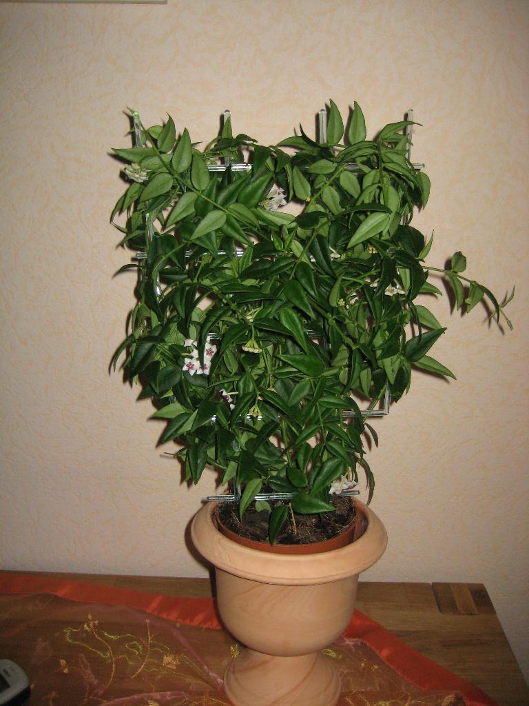 Habe mir gestern auch etwas gegönnt,Hoja Bella,weil sie schon so viele Blüten und Knospen hatte,konnte ich sie nicht stehen lassen.Habe sie aber aus dem Klettergerüst befreit und sie in eine Blumenampel gesetzt,Gruß Bonny
