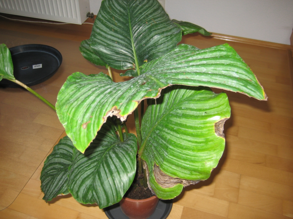 ich hab mir ne neue calathea gekauft, eher ein projekt zum aufpäppeln dafür konnte ich sie vom preis her runterhandeln und war für die große sehr günstig
