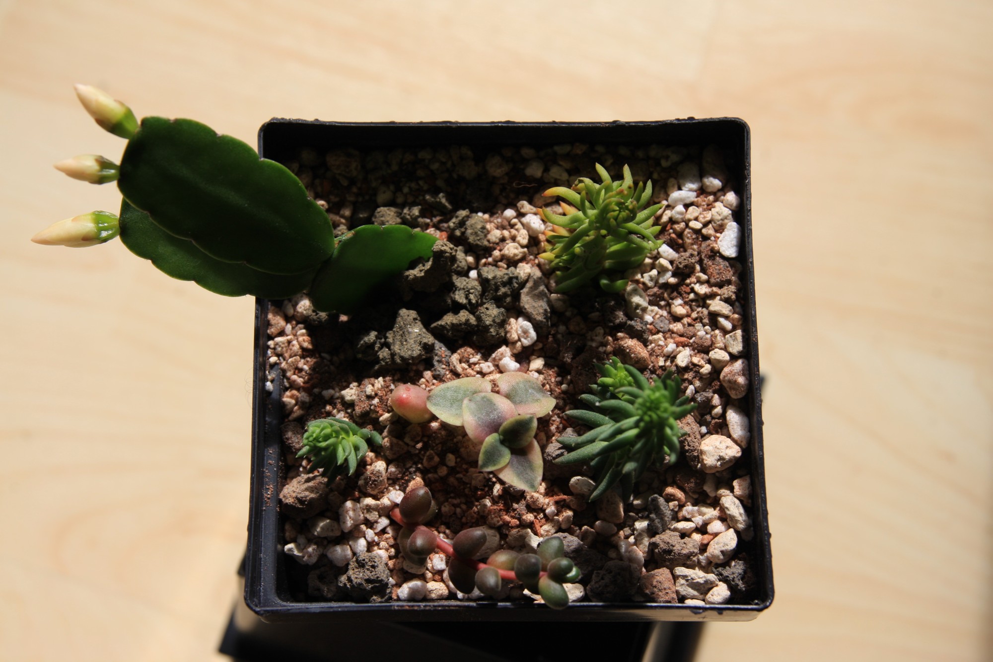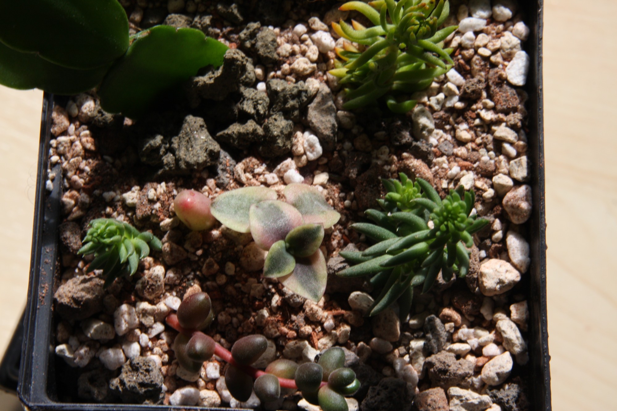 - vier verschiedene Sedumarten (zwei für draußen, zwei für drinnen)