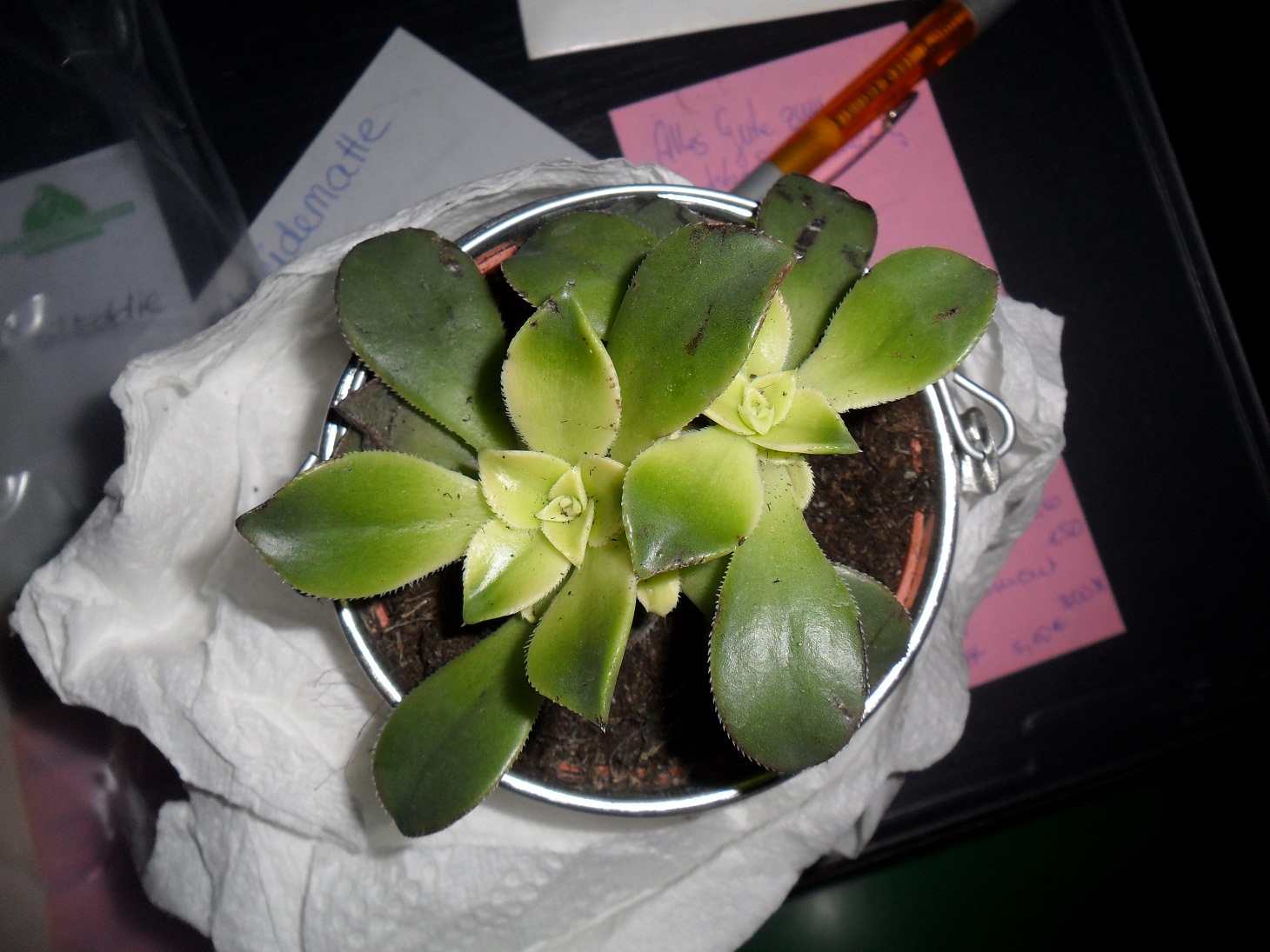 ich hab vor knappt einer woche eine washingtonia robusta palme ausm supermarkt gerettet die dort wohl schon seit fruehling gestanden haben muss, ich habe sie mit genommen und umgetopft, ihr kennt das vielleicht die machen um die erde feucht zu halten im laden unten ne tuete drum, deswegen war es dort auch ein bisschen schimmlig, ich habe sie sofort auf den balkon raus gestellt, jz bekommt sie endlich mal wieder frische luft , die wedel sind ganz schoen mitgenommen, aber ich versuche sie wieder gesund zu pflegen