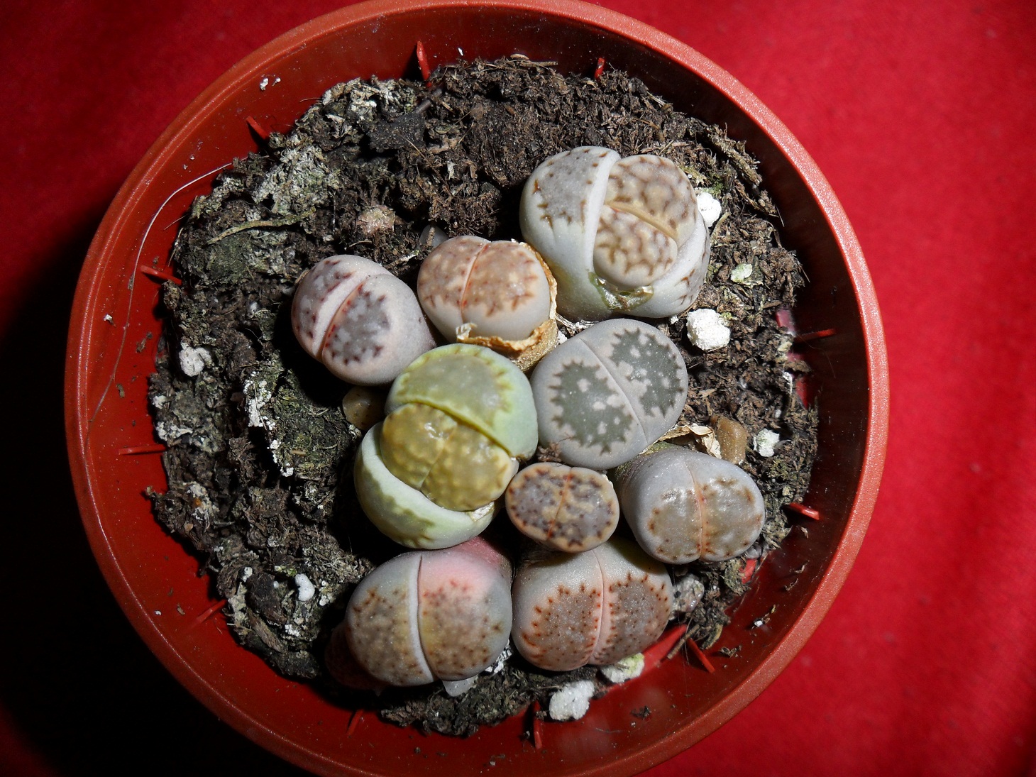 mehrere kleine Lithops in einem Topf