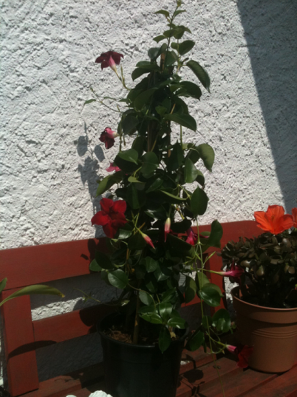 Ich hab gestern ein greenes Geschenk bekommen. Eine (wie ich finde) richtig große Dipladenia (Sundaville)
