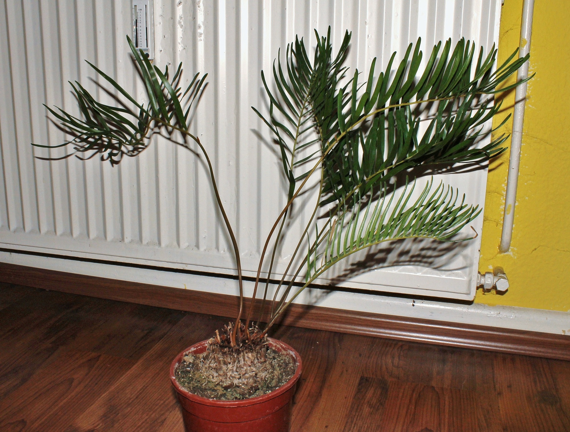 in einem Hamburger Gartencenter stand in der "Reste-Ecke" auch was feines rum: Zamia integrifolia, 11 Euronen hat sie mich gekostet. Das ist für Palmfarne schon echt günstig, da konnte ich nicht anders .