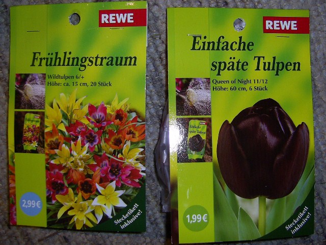 Die Wildtulpen hatte ich letztes Jahr schon gekauft, die sind so toll, davon brauche ich noch mehr! Und die dunklen Schönheiten kommen in ein Beet, in dem noch gar keine Frühblüher sind, da brauche ich dann gelegentlich noch was Weißes dazu