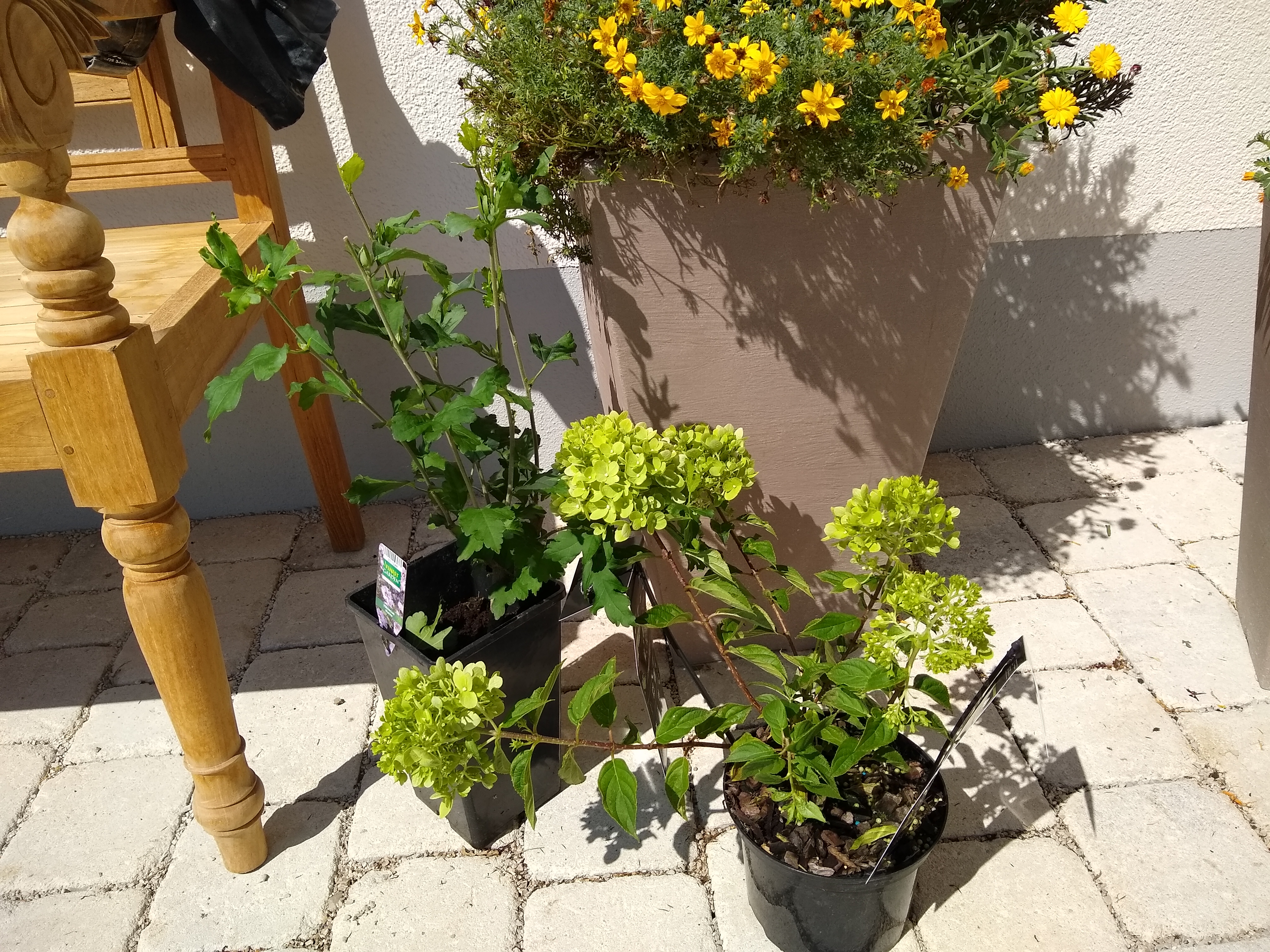 Mir sind heute eine Hortensie und ein Gartenhibiskus in den Einkaufswagen gehüpft