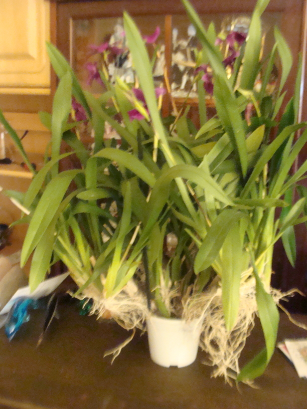 Hallo Pflanzenboy, da hast du aber einen Riesen erstanden zum super Preis. Es könnte ein Cymbidium sein. Ich würde was übersteht abmachen und extra einpflanzen. Es ist ja genug Wurzelmasse vorhanden.