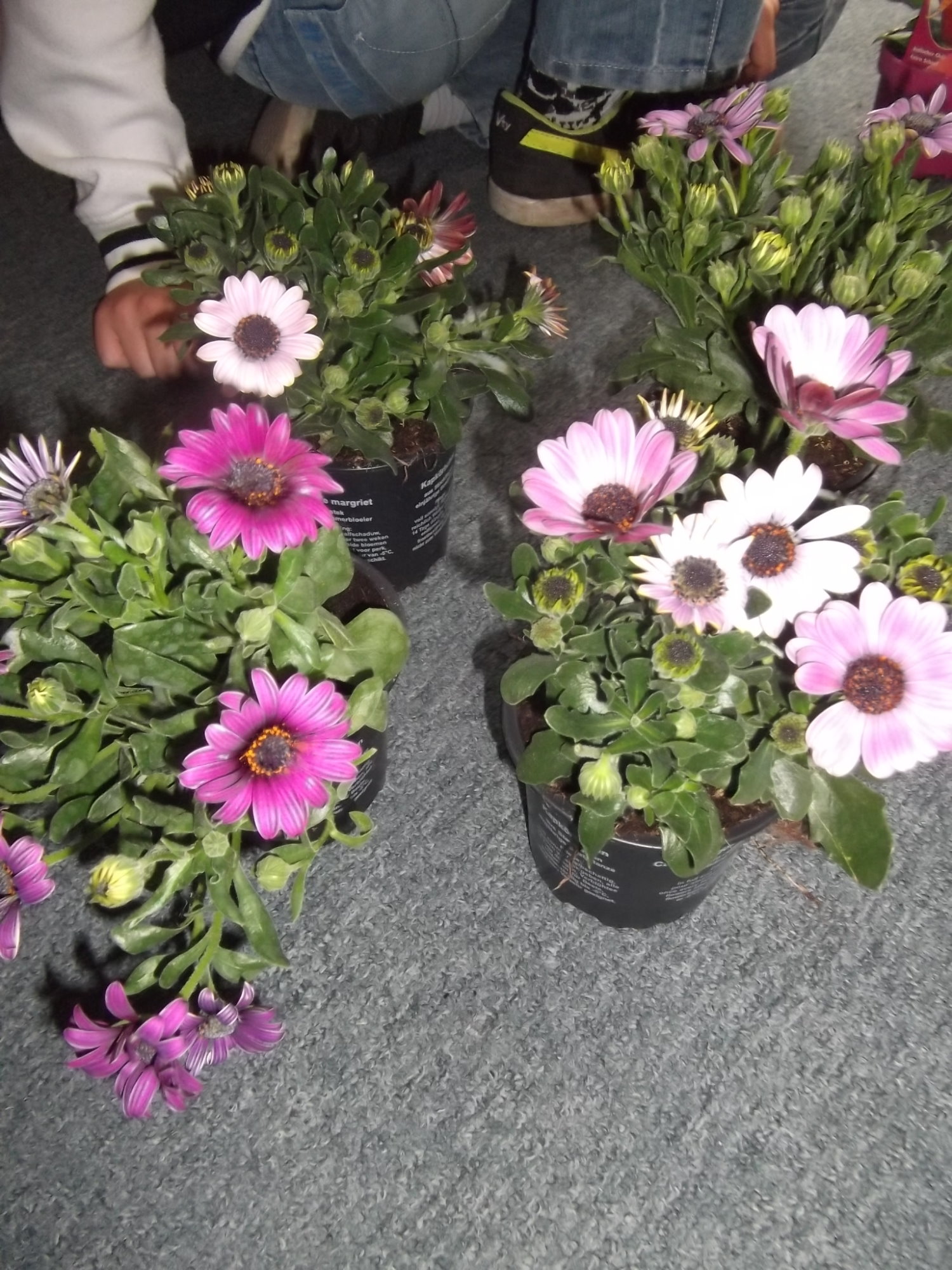 4 x Osteospermum = 9,96 ( 4x2,49) , für die Jugendweihe-Tafel am Samstag