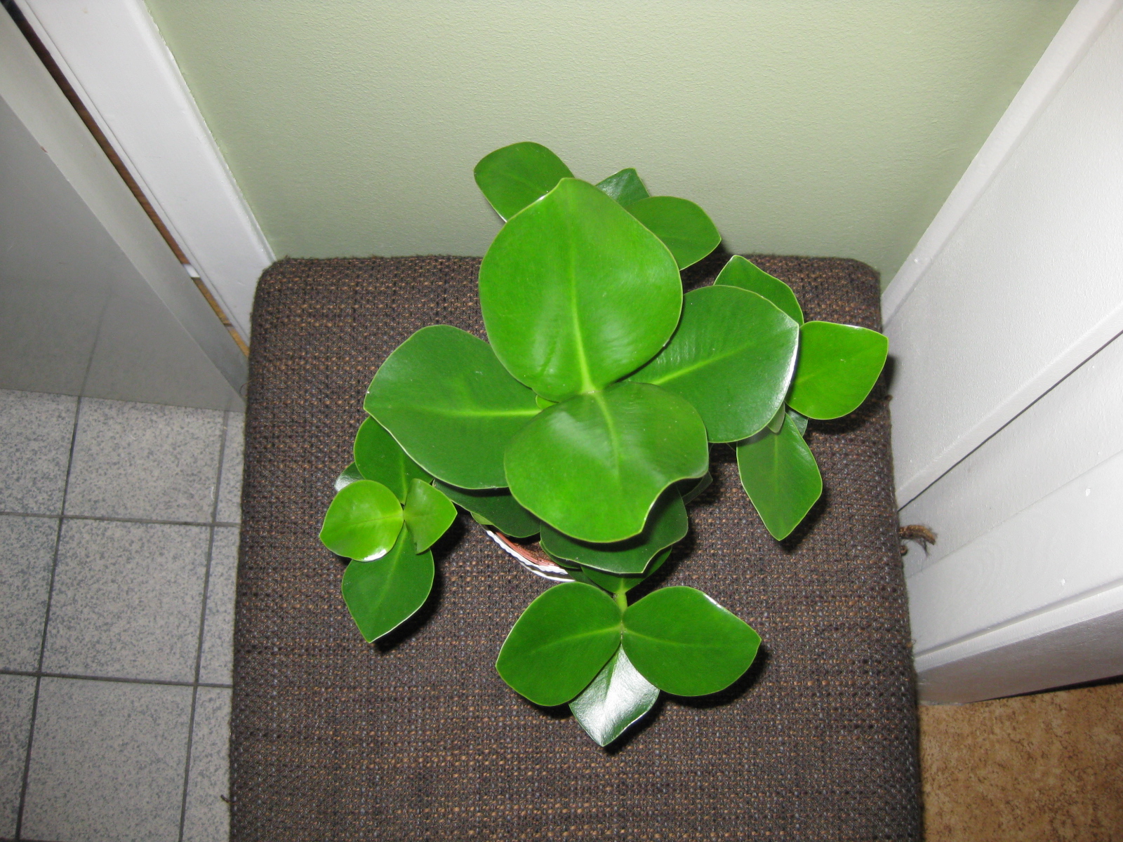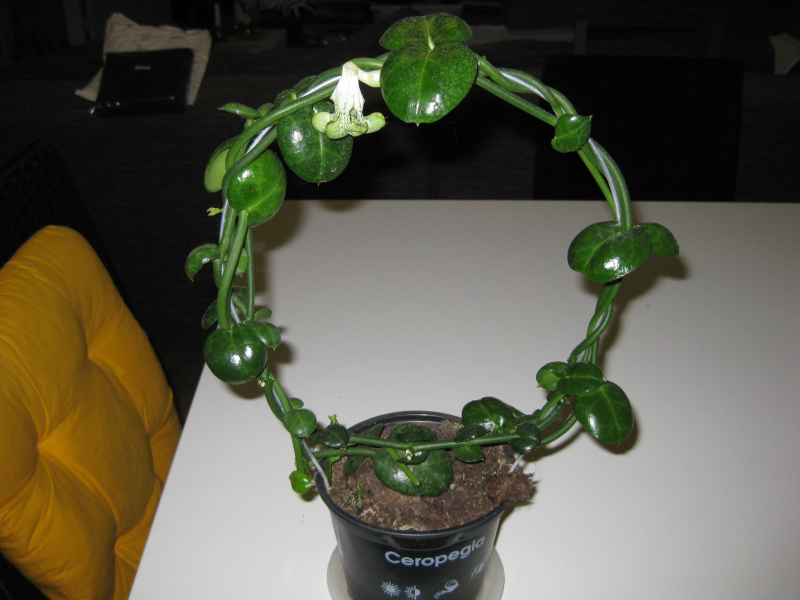 Nach einer vorsorglichen Ungezieferbehandlung steht sie nun zwischen den Hoyas und darf nach der langen dunklen Zeit im Laden wieder Licht tanken. Leider sind fast alle Blüten verblüht.