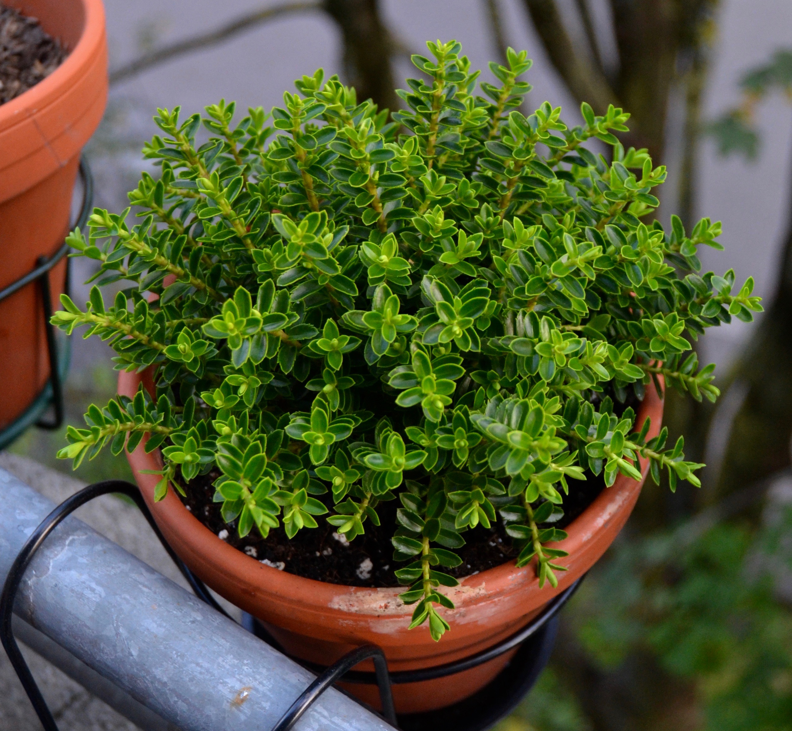 ...und heute habe ich bei bei Ba***us vorbeigeschaut - mit dem Plan, eine einzige Balkonpflanze mitzunehmen (guter Witz, ich weiss ). Jedenfalls habe ich dann eine Veronica odora 'Nana' dazu auserkoren, diesen Zweck zu erfüllen: