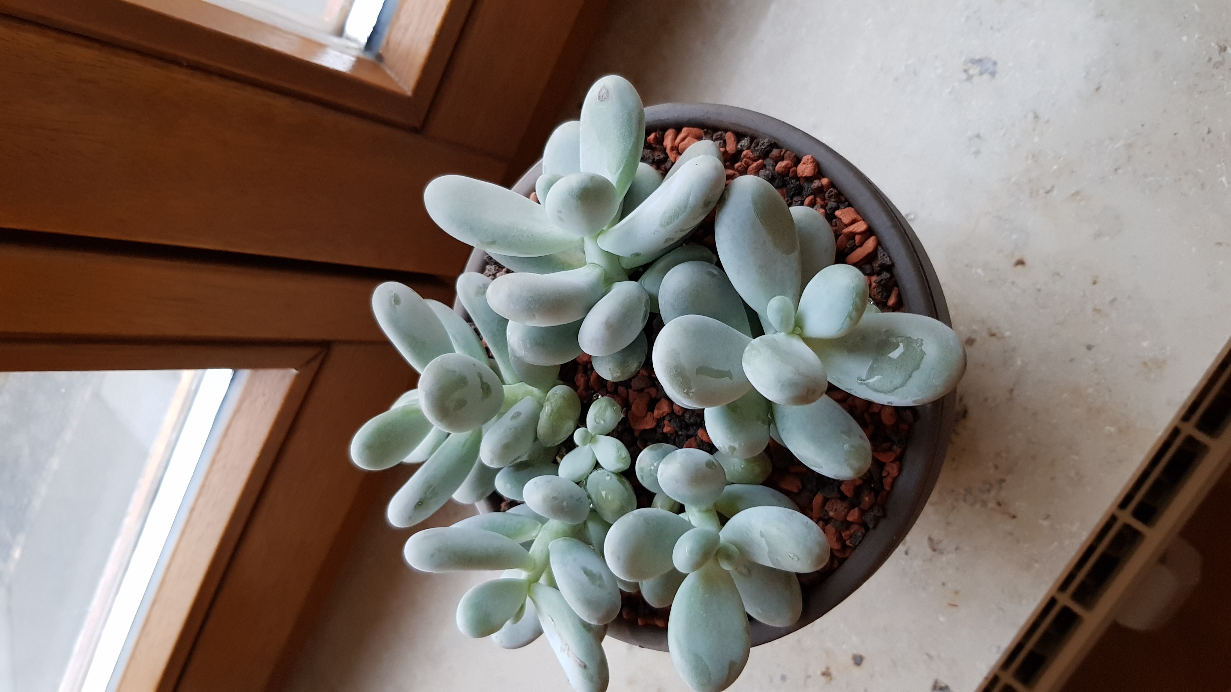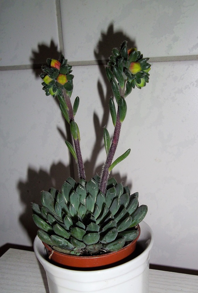 Fast vergessen: zum Geburtstag gab es noch diese Echeveria! Da sie wohl blühen wird, lass ich sie erst mal in Ruhe.