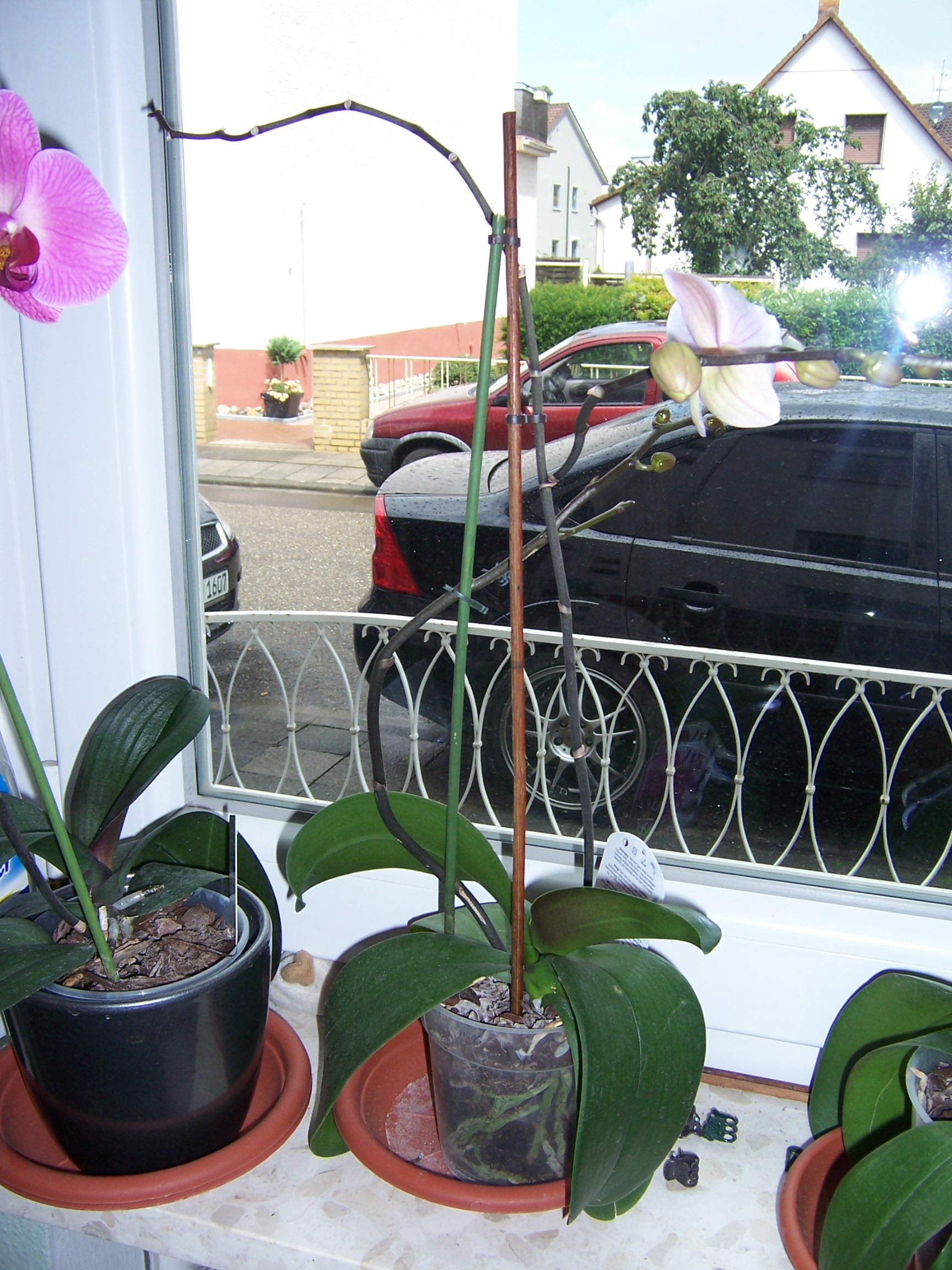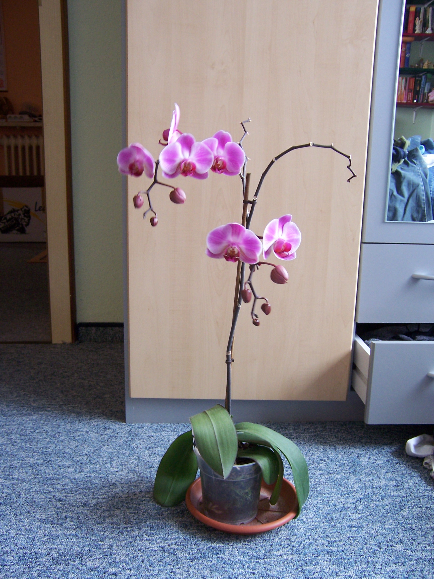 Orchi nr. 3. Die steht normal auch auf dem Fensterbrett, aber da erkennt man net so gut, wieviele Triebe die hat. das hab ich noch nie gesehen, der absolute Hammer...