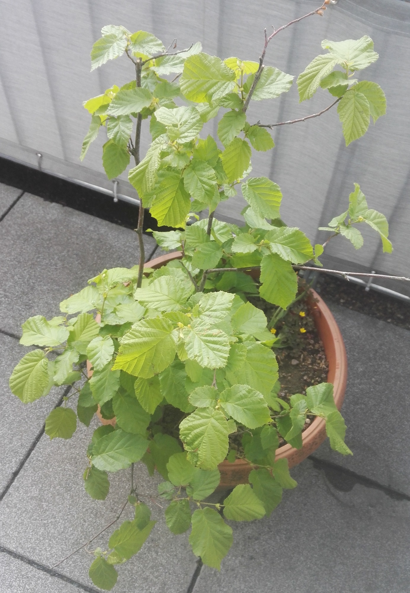Der Haselnuss hatte sich immer wieder erholt. Vor ein paar Wochen hatte ich mir gerade eine gute Astschere geliehen und im Wechsel mit einer Säge den von Pilz befallenen Holzstumpf zerkleinert. Komplett weg bekommen habe ich ihn nicht, aber er scheint auch noch mit den Ästen verbunden zu sein.