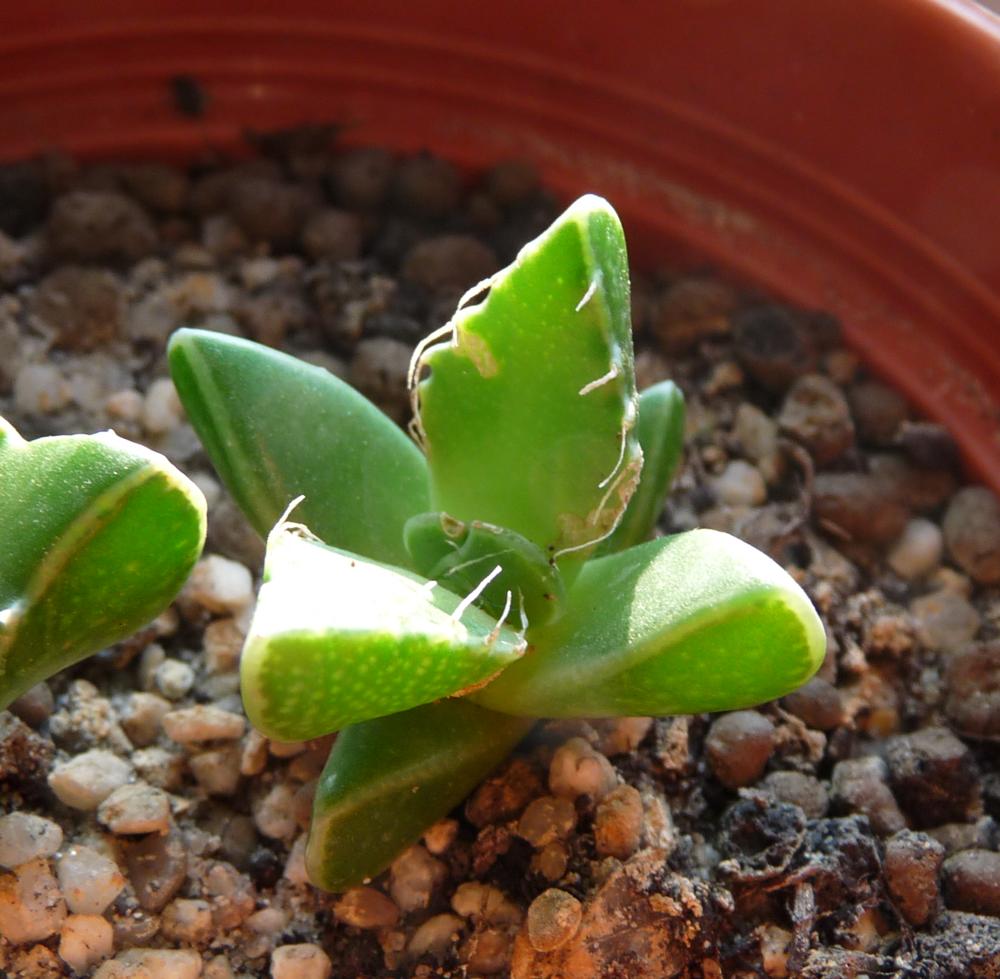 bei einem meiner Faucaria-Sämlinge von diesem Jahr sind vor ca. 2 Monaten merkwürdige, bräunliche "Narben" (weiß nicht, wie ich's sonst beschreiben soll) aufgetaucht, die sich langsam auszubreiten scheinen. Allen anderen geht's gut. Heute habe ich allerdings gesehen, dass auch der andere Sämling, der sich im gleichen Topf befindet, eine kleine vernarbte Stelle bekommt.