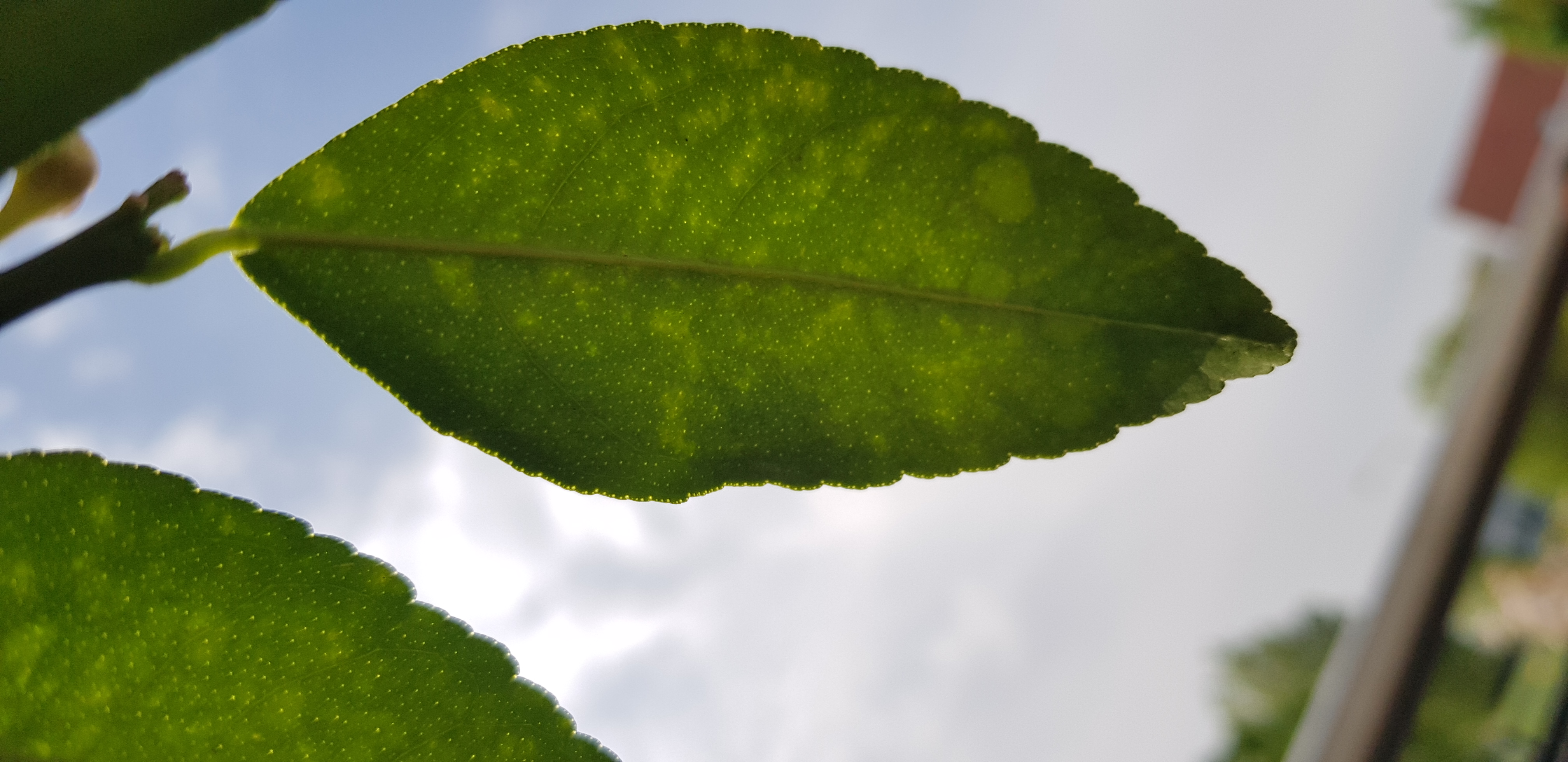 Gestern fiel mir auf, dass einige Blätter gelb gesprenkelt sind, wenn die Sonne draufscheint.