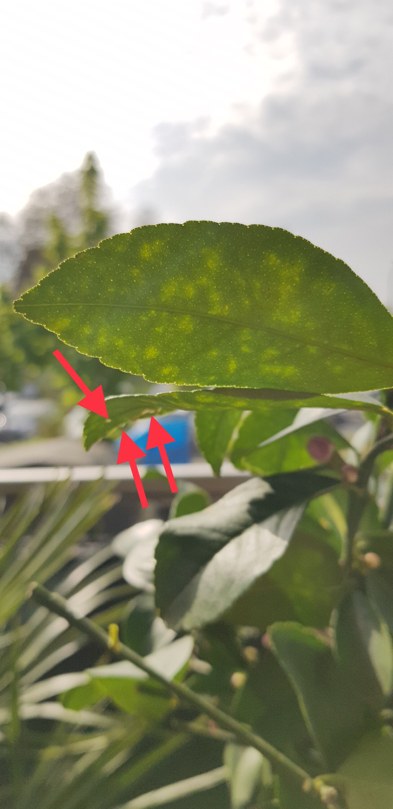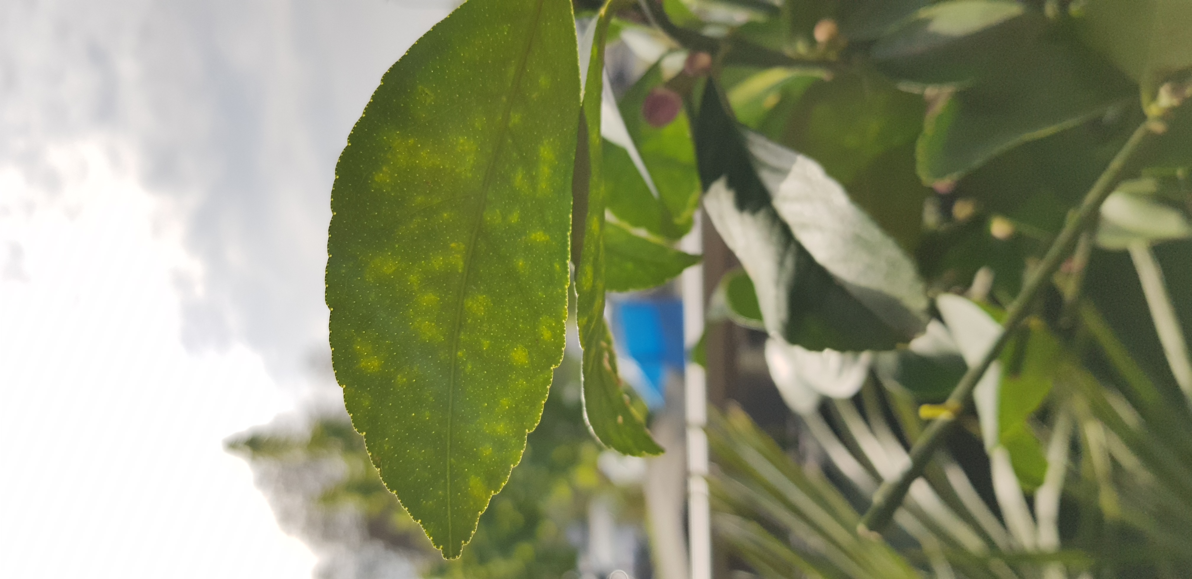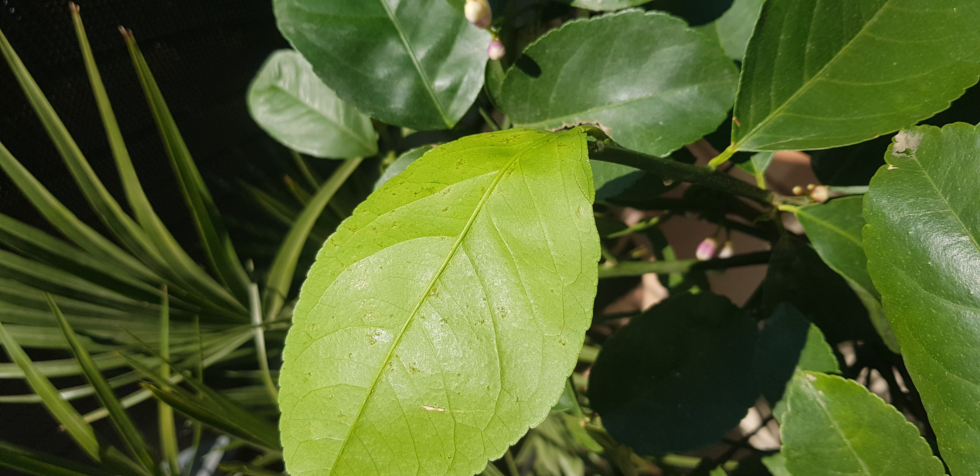 Gestern fiel mir auf, dass einige Blätter gelb gesprenkelt sind, wenn die Sonne draufscheint.