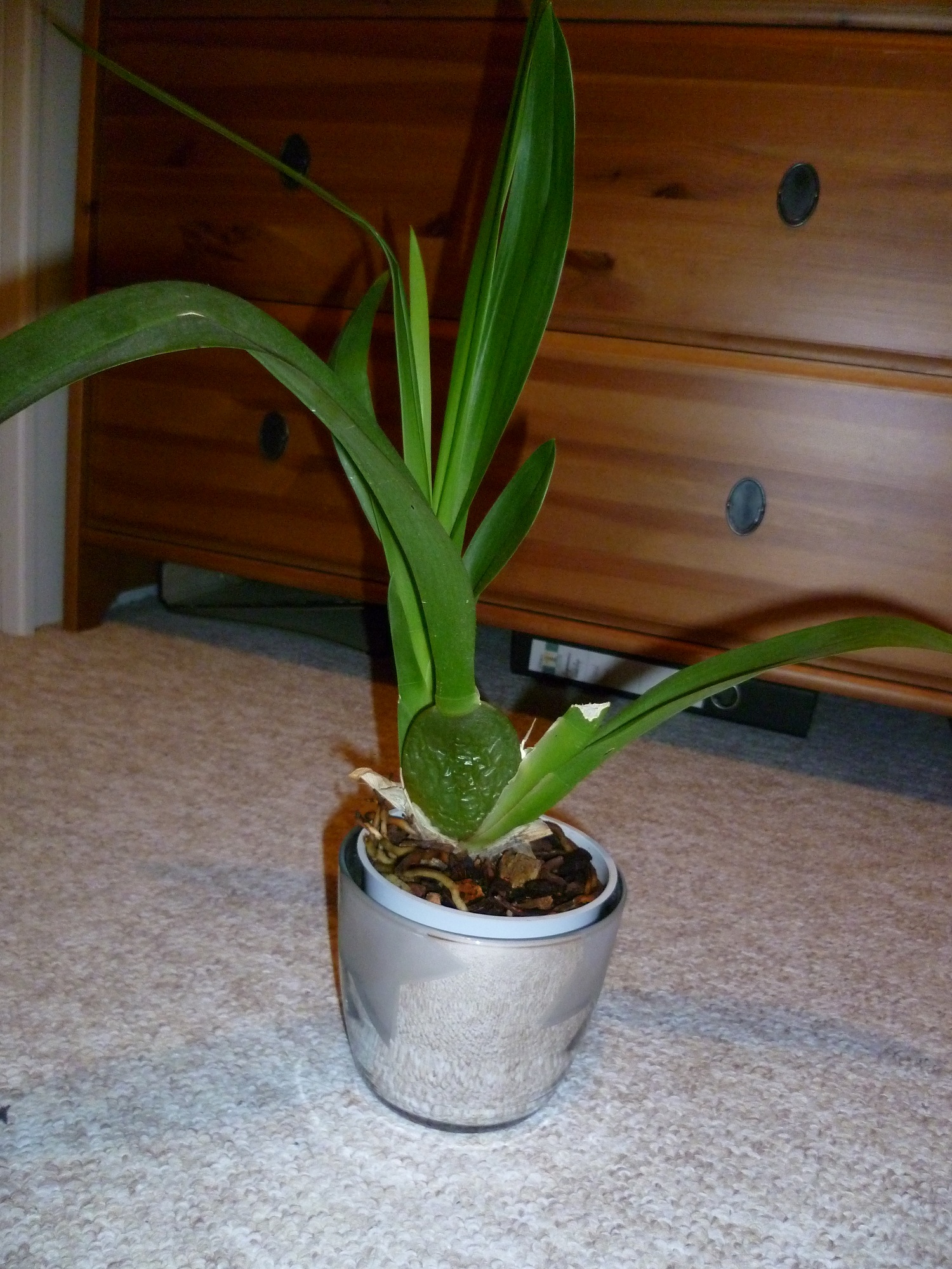 Sie hat eine eingeschrumpelte Bulbe und deswegen hab ich sie gegossen, aber nichts ist passiert.