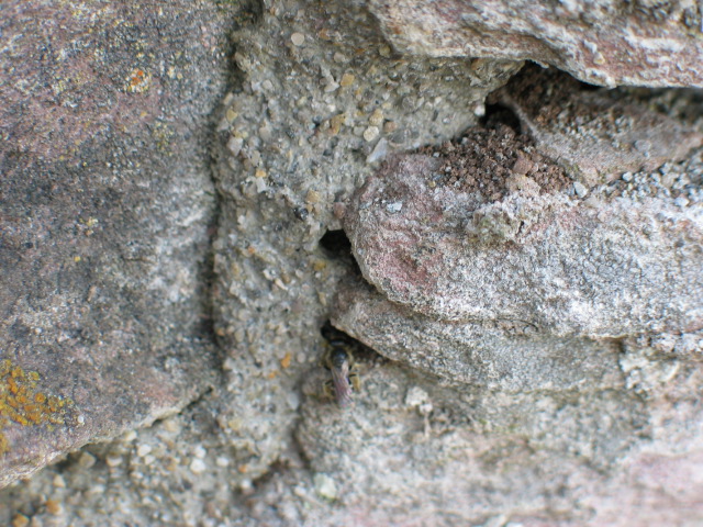 Es scheint der Tag der Erdbienen zu sein. Bei Reparaturarbeiten an einer Steinmauer haben wir heute auch welche entweder aufgescheucht oder angelockt.