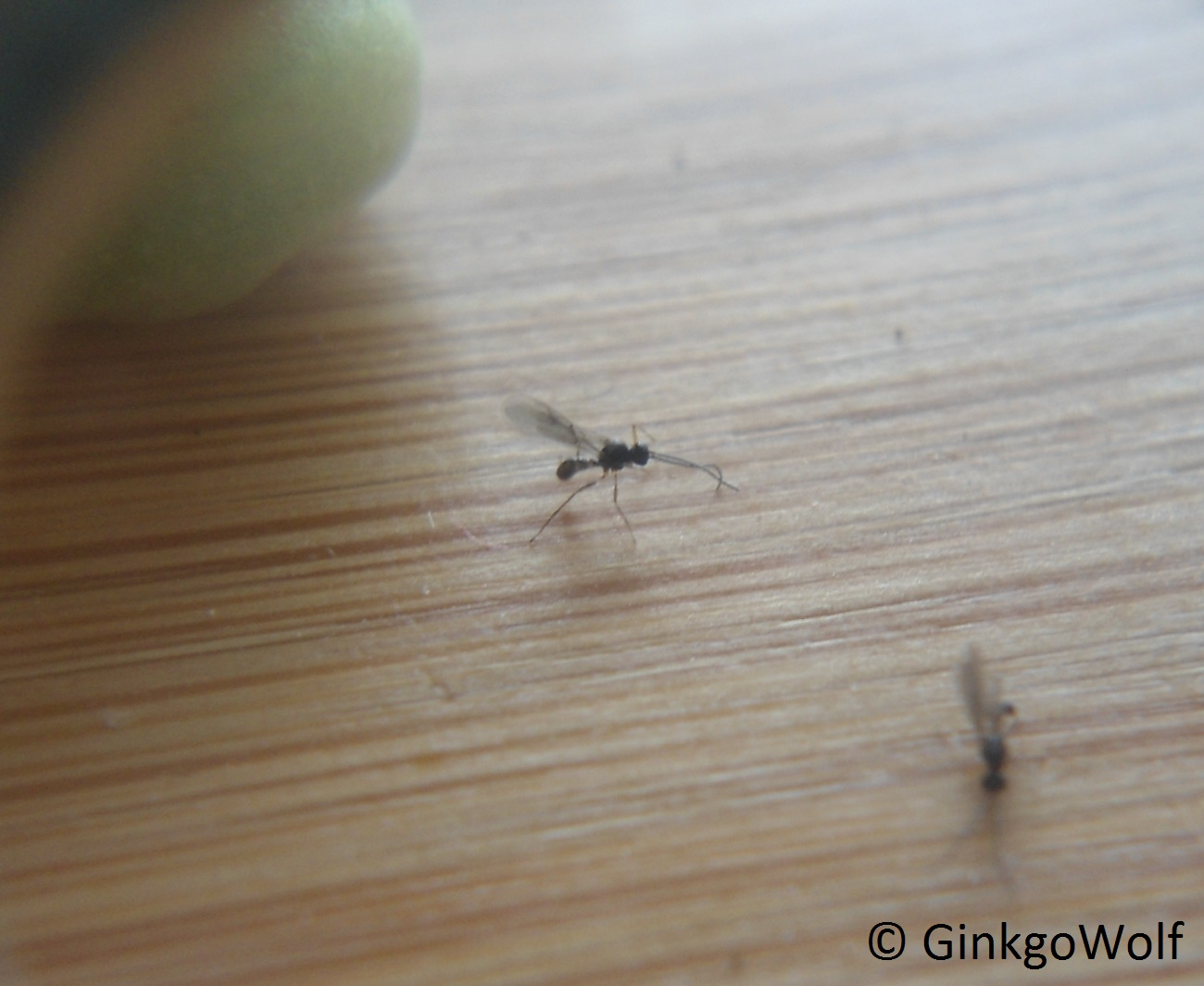 Trauermücken schließe ich aus, die siehen anders aus und tummeln sich auch gerne an meinen Pflanzentöpfen. Das machen diese kleinen Kerlchen nicht; die sind fast ausschließlich an meiner Fensterscheibe unterwegs bzw. sie trauen sich nicht weiter in den Raum als max. zwei Meter.