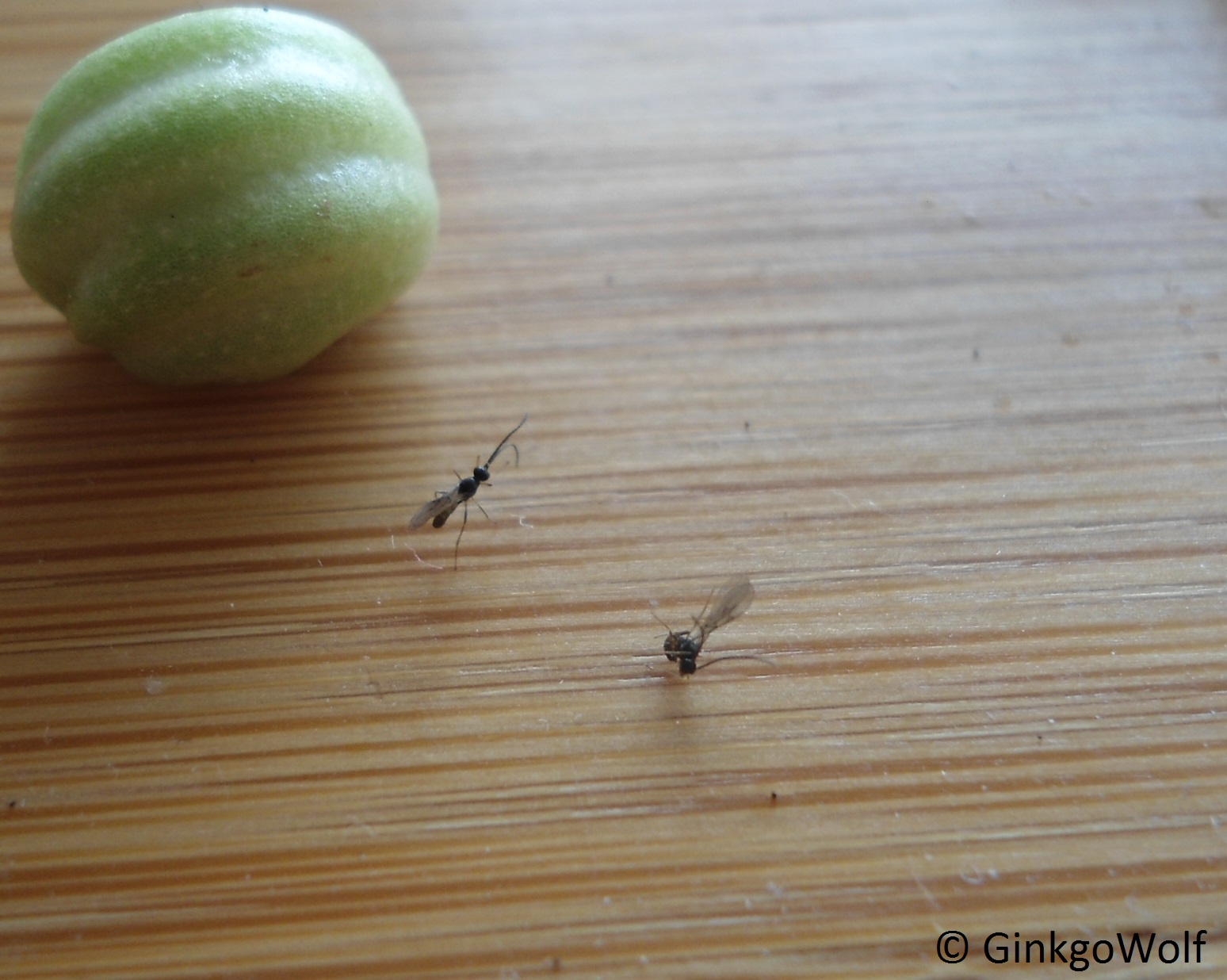 Kann mir jemand sagen, ob's vllt Schlupfwespen sind, die Blattläuse parasitieren?