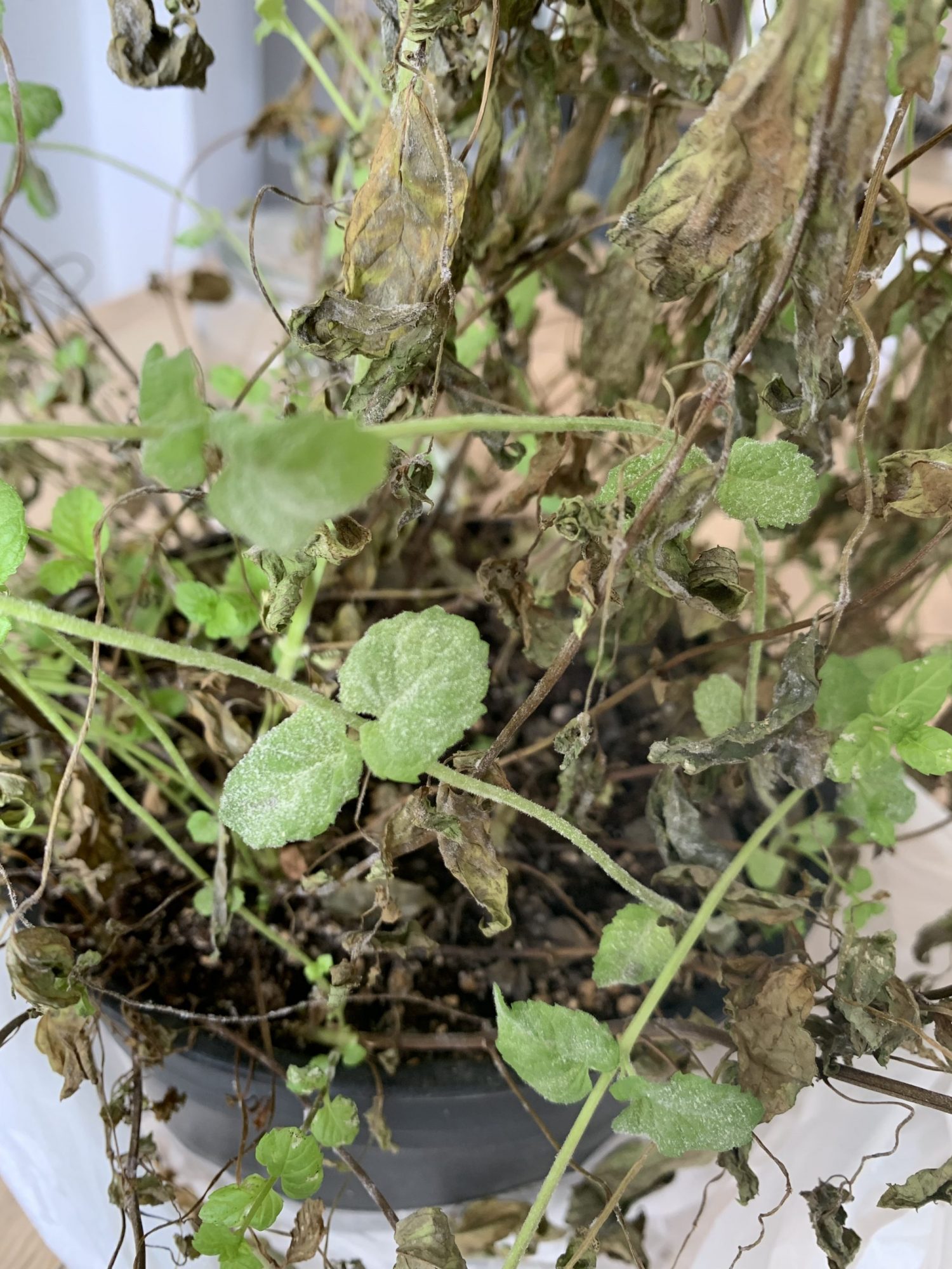 Minze waren ausgetrocknet, erstmal schwarze Flecken, dann Schimmelbefall (wohl Mehltau). Aber genauso mit Basilikum...