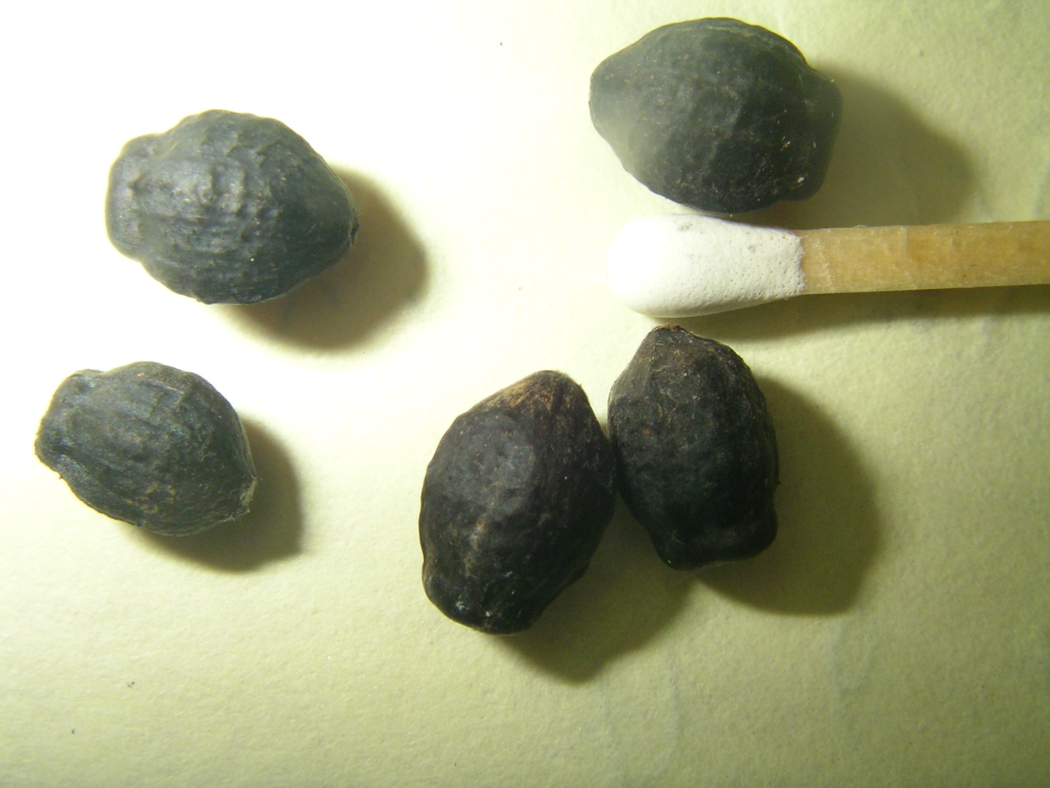 Also übersehen kann man sie kaum. Die Samen sind 4-8mm dick. Und wenn sie reif sind, sieht man schwarze Kügelchen in einer grünen Umhüllung.