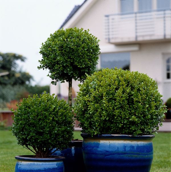Die traditionellen Pflanzzeiten für Gehölze sind Frühling und Herbst. Auch im Sommer können Bäume und Sträucher gepflanzt werden, wenn sie in Gefäßen - den so genannten Containern - angeboten werden und eine gute und regelmäßige Wasserversorgung nach dem Pflanzen gesichert ist. Das Sortiment von Pflanzen mit kugelförmiger Krone oder kugelförmigem Wuchs ist abwechslungsreich und bietet etwas für die verschiedensten Gartengrößen. Am bekanntesten sind in Form geschnittene Buchsbäume, die es in unterschiedlichen Größen gibt. Formgehölze setzen im Garten Akzente und bieten einen weiteren Vorteil: Im Gegensatz zu nicht beschnittenen Pflanzen, die vielleicht sogar weitausladend wachsen, benötigen sie weniger Platz - nicht nur wegen ihrer kompakten Wuchsform, sondern auch, weil sich ihre Größe gut mit der Schere begrenzen lässt. Buchsbäume machen sowohl im Gartenbeet als auch in großen Töpfen eine gute Figur. Sie sind deshalb auch ein Geschenk für den Fußballfreund, der keinen Garten, dafür aber einen Balkon oder eine Terrasse hat. Beliebt sind zum Beispiel auch Buchsbaumkugeln in schönen Gefäßen rechts und links der Haustür.