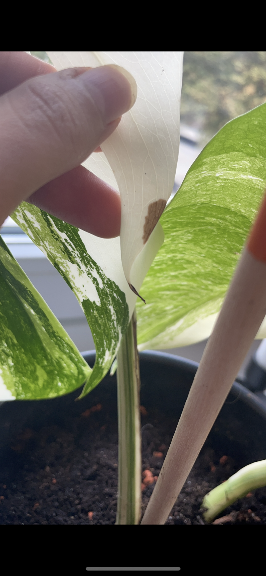 ein einzelnes Blatt meiner Monstera färbt sich am Rand braun. Und das verbreitet sich recht zügig.