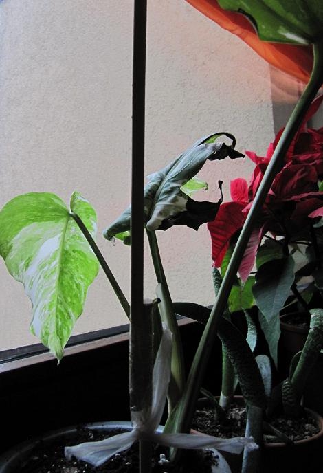 Da alle drei anderen Monsteren mittlerweile wieder wachsen rechne ich bei dem eigentlich auch wöchentlich mit dem Erstaustrieb; also denke ich, dass die Monstera deliciosa variegata nur anfälliger auf Haltungsfehler reagiert, unter guten Bedingungen aber doch eine relativ anspruchslose Pflanze ist.