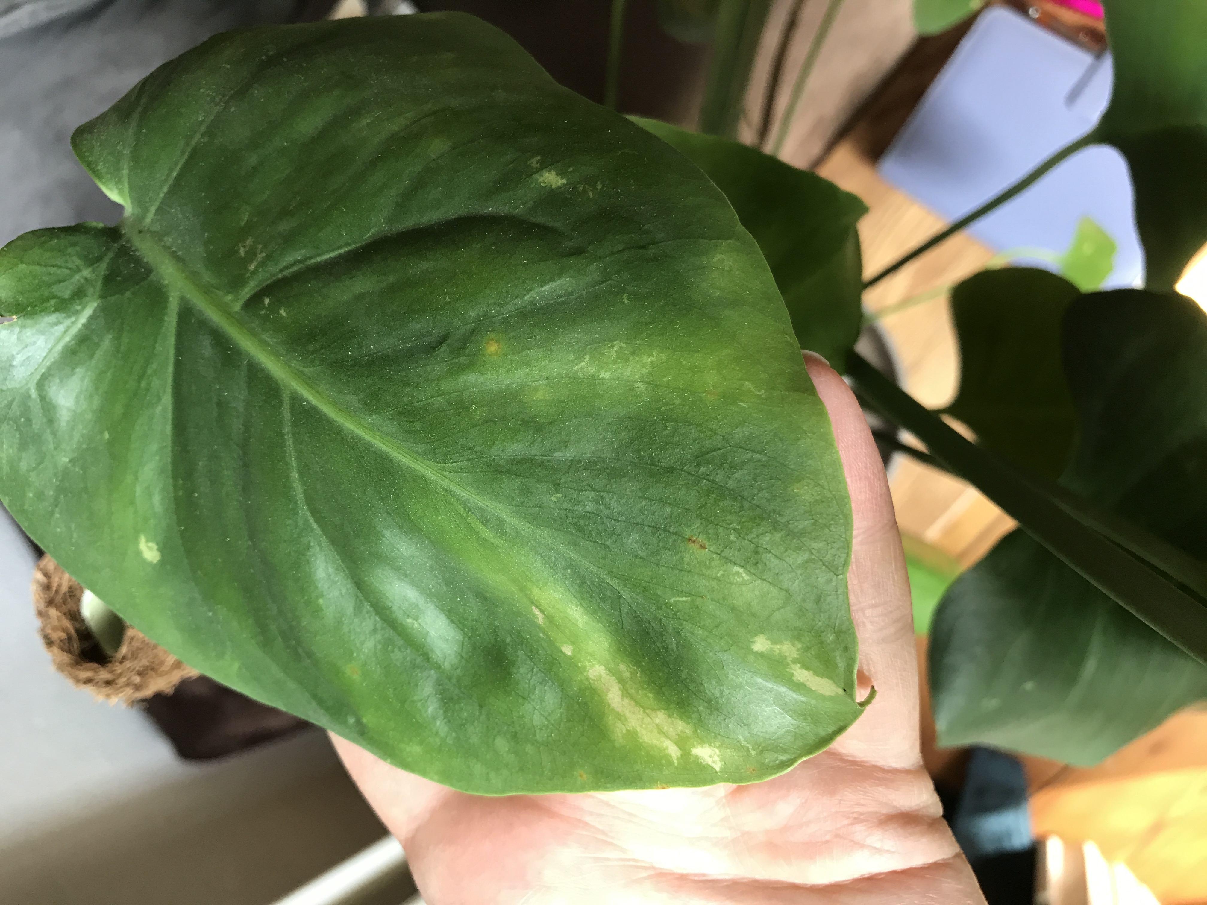 Ich habe eine eigentlich gut wachsende Monstera Deliciosa, sie bekommt regelmäßig neue Blätter und bildet kräftige Luftwurzeln. Allerdings weisen ein paar der kleineren Bätter gelbliche Verfärbungen und kleine helle Flecken auf. Auf den Unterseiten dieser Blätter sind ganz kleine schwarze Punkte zu sehen. Das Schadbild passt auf die Beschreibung von Thripse, aber ich sehe keine Schädlinge. Daher könnte es ja auch ein Nährstoffmangel sein, oder?