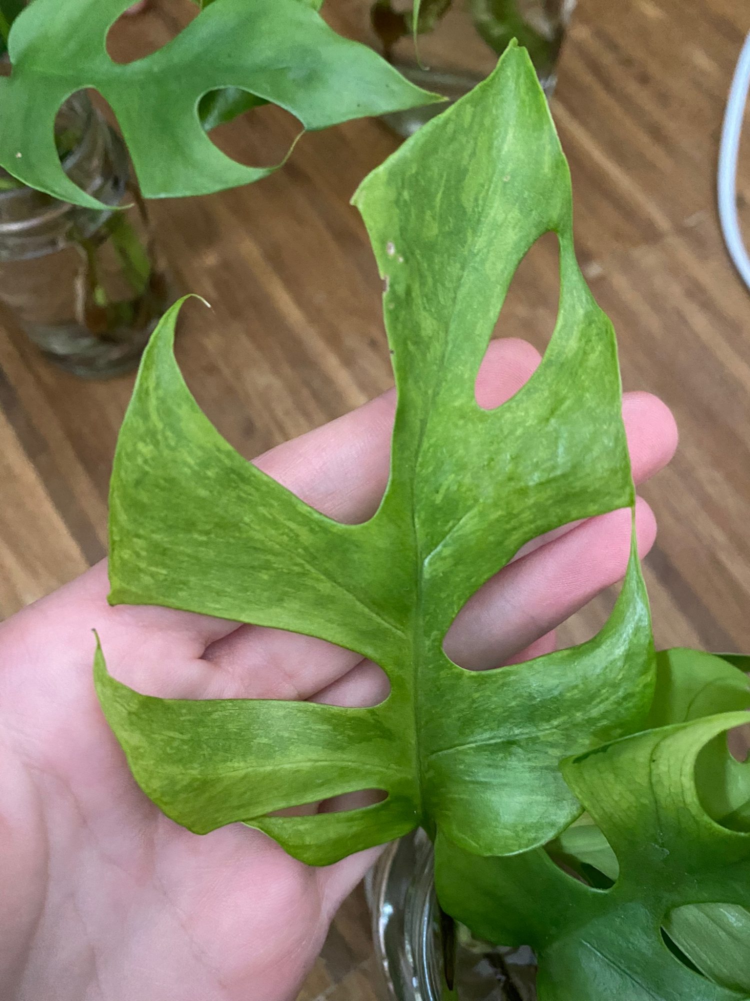 Also nun zu meinem Problem: ich habe vor 3 Tagen eine wunderschöne Monstera minima gekauft, sie sieht im großen und ganzen gesund aus (abgesehen von einigen kleineren Vernachlässigungen) und hat eine feine Musterung auf einem Großteil der Blätter. Allerdings habe ich gelesen, dass diese Musterung auch ein Hinweis auf das Mosaik-Virus sein könnte. Da ich unglücklicherweise die Pflanze nicht quarantiniert hatte, könnte das den Tod für meine ganzen anderen Pflanzen bedeuten...