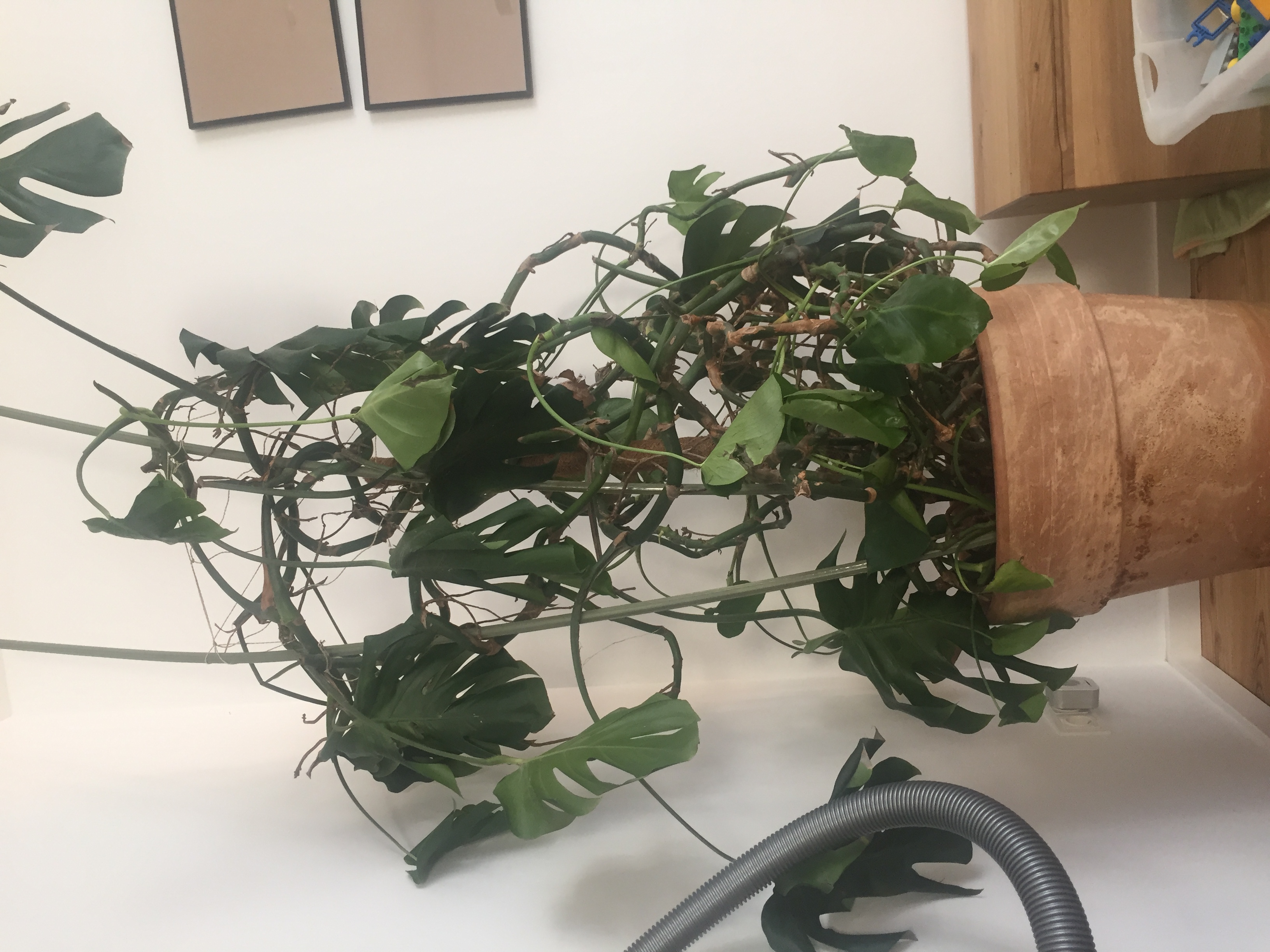 Ich habe sie jetzt 1/2 Jahr kaum gegossen, da ich sie eigentlich aufgegeben hatte, und dann wieder etwas mit Mineralwasserresten, woraufhin sie sich gerade unglaublich erholt. Nur mit dem Problem der Blätter! Merkwürdig ist auch, dass viele neue Blätter nicht dem Alter der Pflanze entsprechen, sondern denen einer jüngeren Monstera. Und das am „alten“ Stamm und nicht bei neu verwurzelten Trieben.