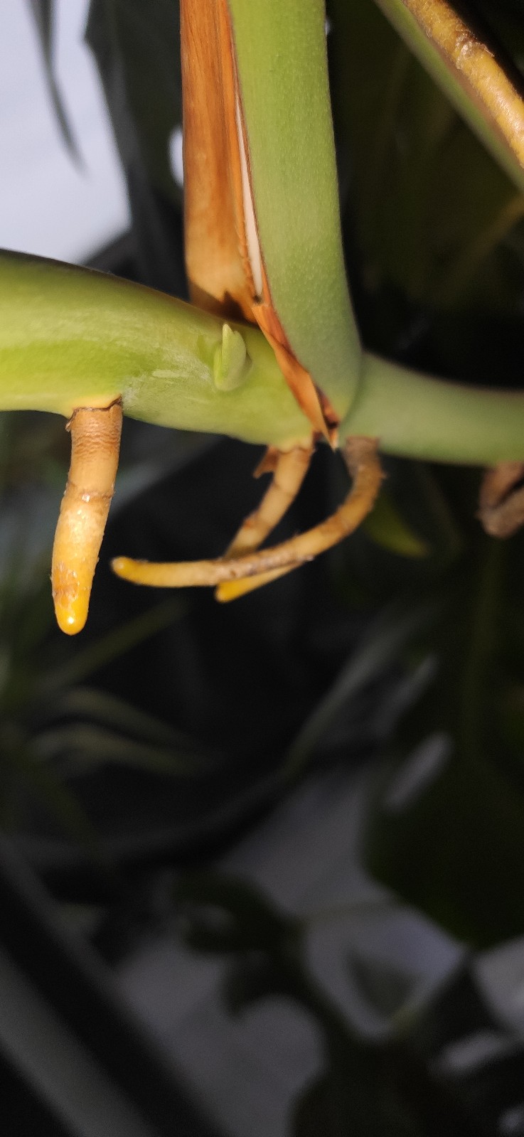 Hi, habe vor kurzem mehrere Seitentriebe an meiner Monstera gefunden, die aus schlafenden Augen erwacht sind. Finde es ungewöhnlich, da ich nichts abgeschnitten habe, können aus denen wirklich was werden? Anbei zwei Bilder, insgesamt habe ich um die vier entdeckt. Auf dem zweiten Bild ist es unter der oberen, neuen Luftwurzel.