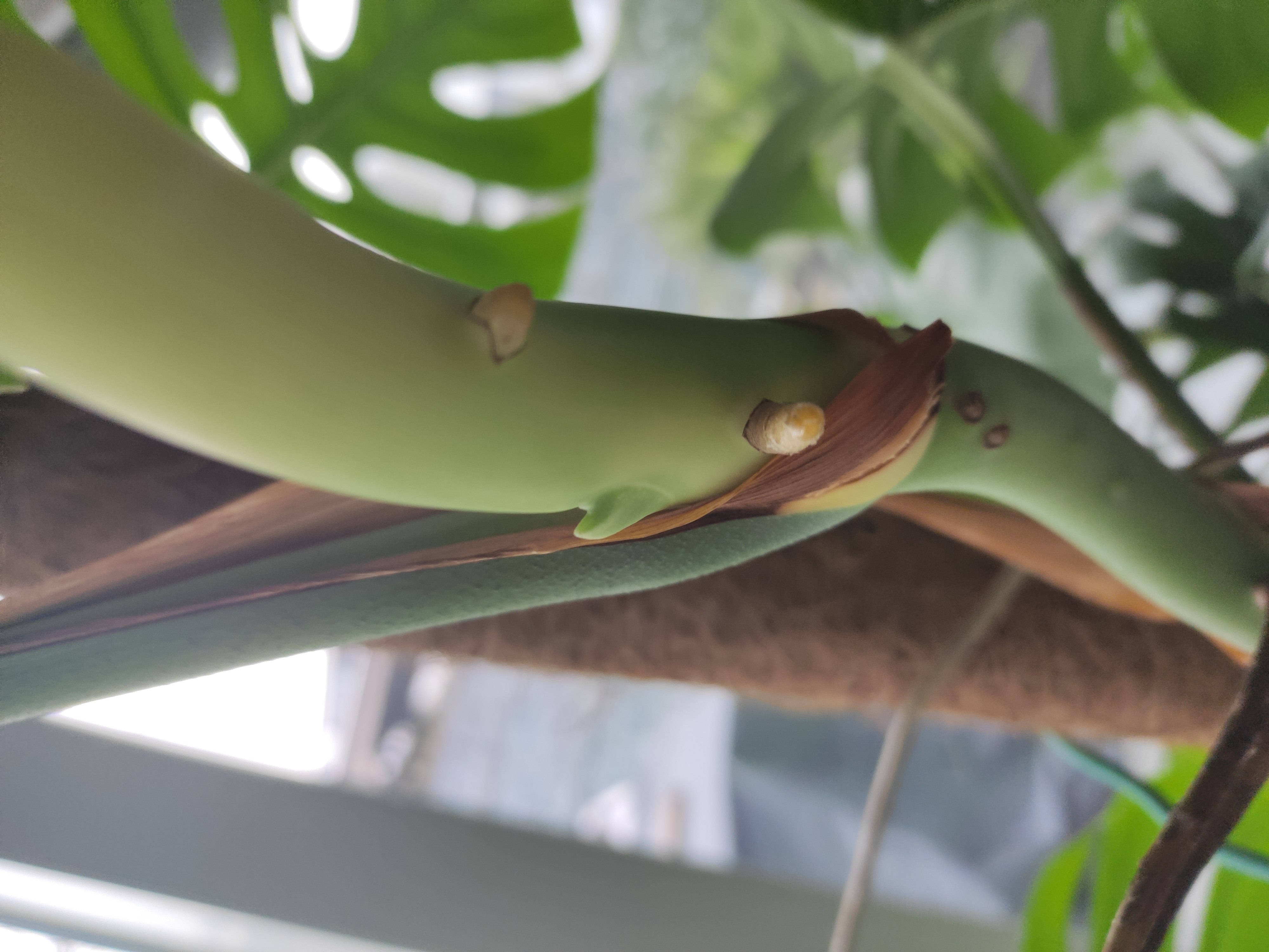 Hi, habe vor kurzem mehrere Seitentriebe an meiner Monstera gefunden, die aus schlafenden Augen erwacht sind. Finde es ungewöhnlich, da ich nichts abgeschnitten habe, können aus denen wirklich was werden? Anbei zwei Bilder, insgesamt habe ich um die vier entdeckt. Auf dem zweiten Bild ist es unter der oberen, neuen Luftwurzel.