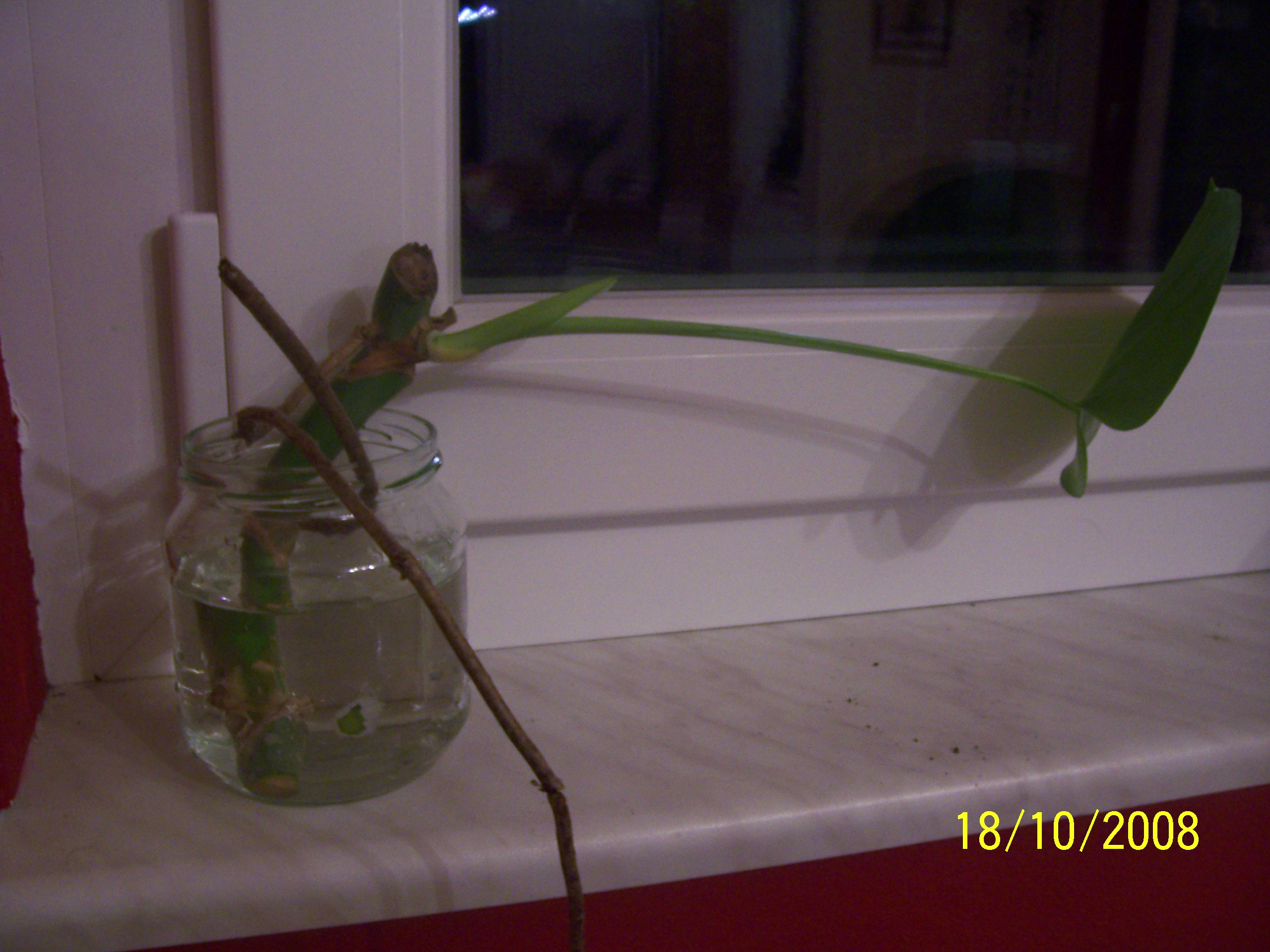 Das Blatt bleibt schön grün, das Wasser wird ab und an mal aufgefüllt, aber nicht das leiseste Würzelchen zeigt sich. Nur die Schnittstelle ist inzwischen dunkel geworden.