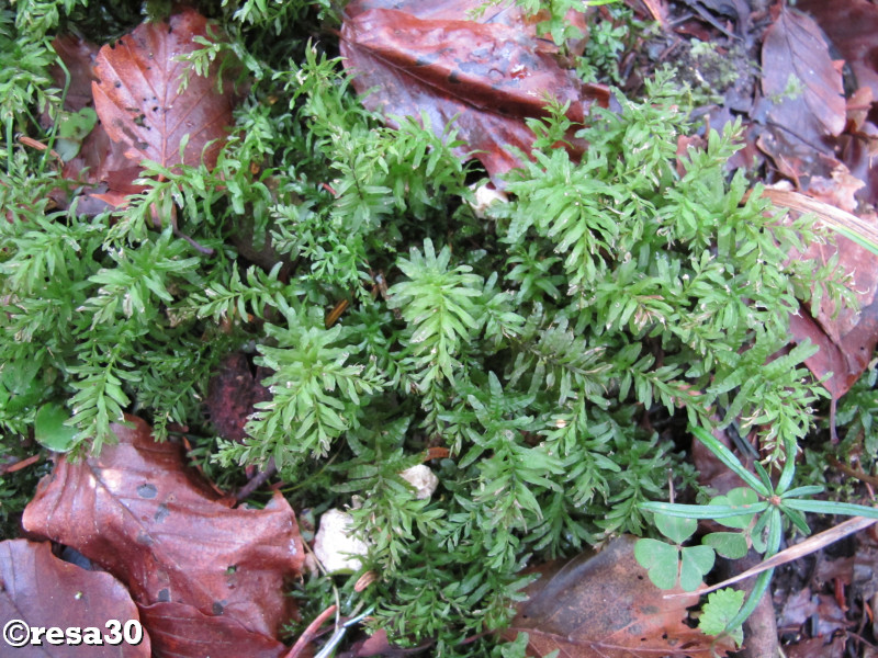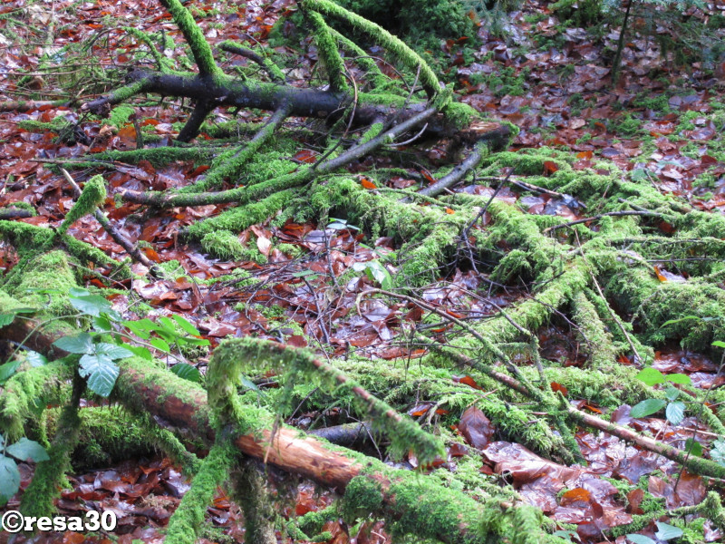 Bild 1: Auf dem Baumstamm Polytrichum, rundherum Thuidium tamariscinum